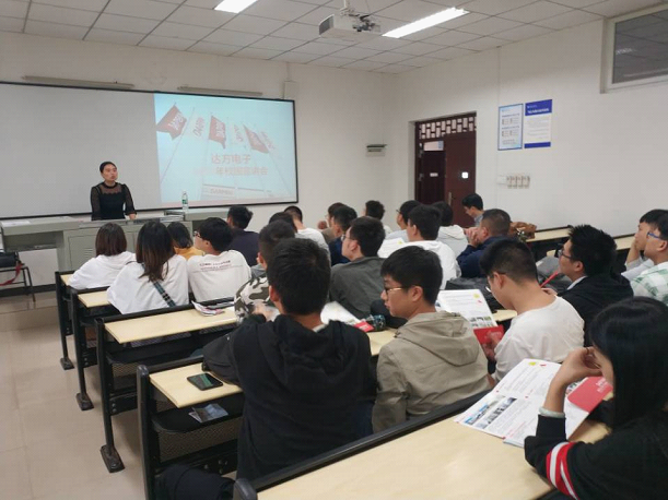 2019年9月18日下午14:30,在重庆工程学院6104教室重庆达方电子有限公司对2016级电子信息学院学生举行了一场专场招聘会,2016级电子信息学院在校学生部分到场,达方电子介绍了公司情况、招聘岗位、员工待遇、员工岗位培训等等情况。介绍完达方电子有限公司相关情况后,学生对自己所关心的问题进行咨询,达方电子与学生进行了友好沟通和交流。最后,到场的绝大部分学生投了自己的简历。