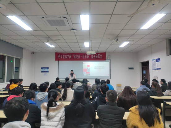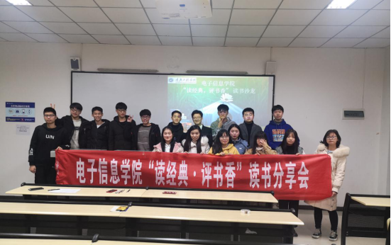 水韵潺潺,滋润万物生灵,书香幽幽,培育芸芸众生。为了让各位读者分享各自灵动的思绪、精湛的见解和深邃的思想,提高他们自身的人文素养,充实和提升他们自身的内涵和品位。特此电子信息学院于2019年12月11日19:00在第六教学楼102室开展了“读经典,评书香”读书沙龙活动。