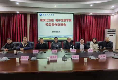 2020年11月26日上午,重庆比亚迪锂电池有限公司人事经理王文星一行4人访问电子信息学院。院长何世彪、副书记宁俊龙、副院长陈成瑞、就业科副科长卢瑛、自动化系主任李新接待了王经理一行,并在会议室就校企合作相关内容进行了交流。