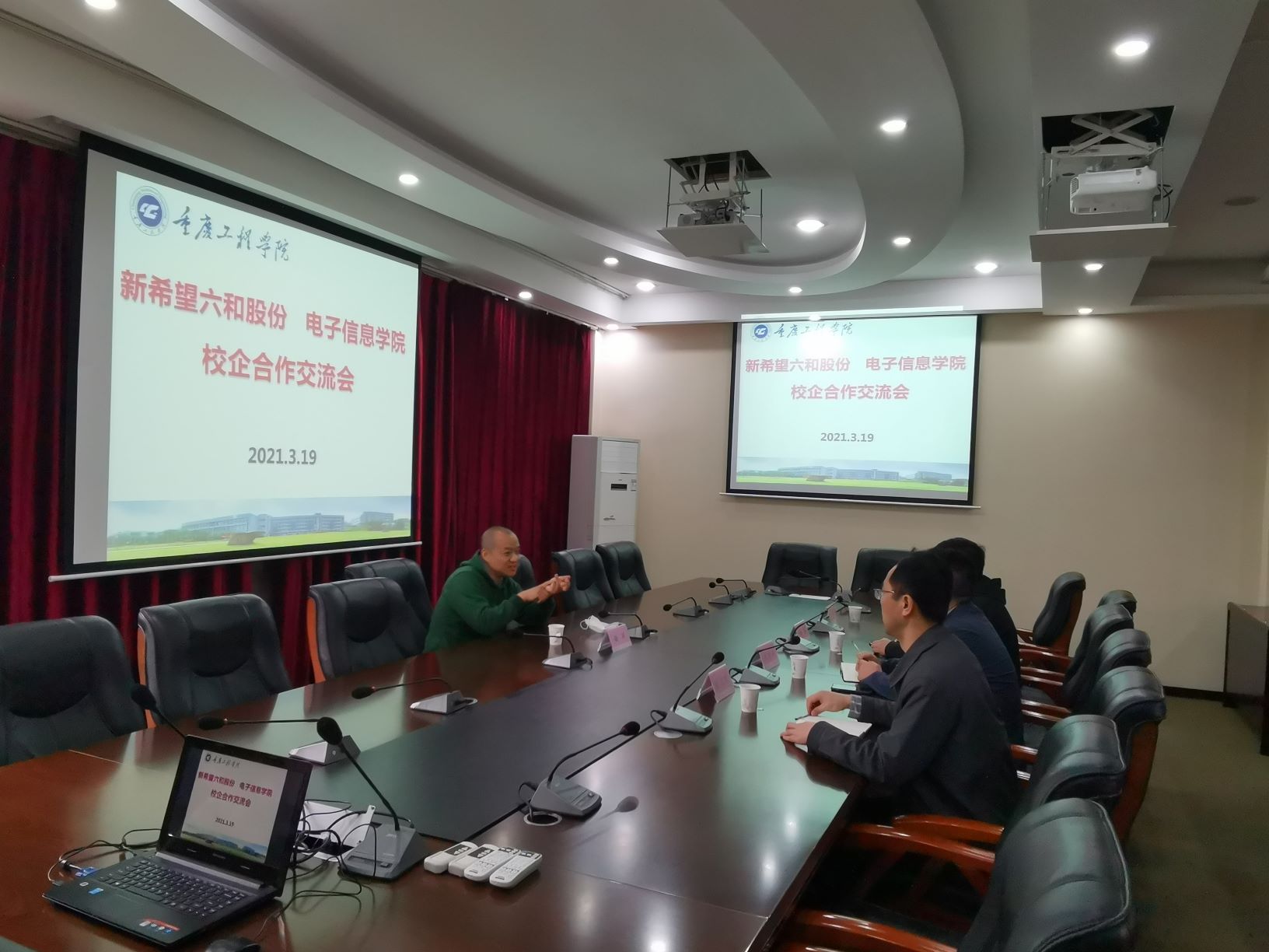 首先,黄苹总监就企业发展、用人需求、员工发展等方面做了详细的介绍,企业对专业技术人才需求量很大,特别是产业自动化之后,对电子信息专业、自动化专业人才需求迫切。公司也面临着人才结构调整,希望有一批具有专业技术的本科毕业生为企业注入新鲜血液。黄苹总监代表新希望六和股份有限公司表达了希望和我院建立长期合作意向。我院党总支书记谭思宇对我院2021届毕业生的就业情况作了介绍,学院副院长陈成瑞对学院开设专业、开设课程、产教融合方式作了详细介绍,校企双方对就业基地建设、校企合作、课题研究等事宜进行洽谈并形成初步意向。