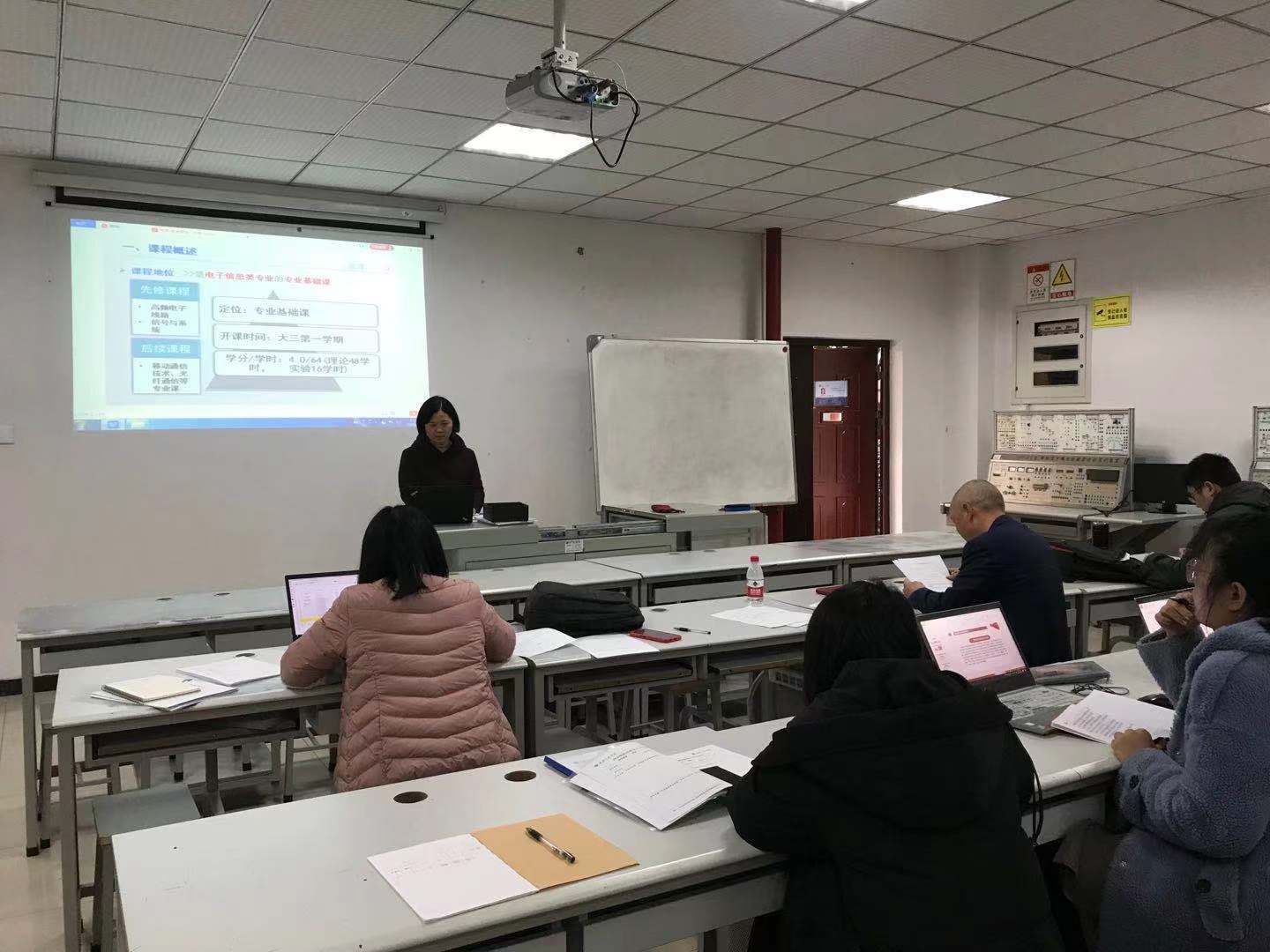 此次比赛由通信系主任许癸驹老师主持,首先许老师介绍此次说课比赛的背景、目的、规则与参赛评委情况。然后参赛老师依次进行了说课和教学展示,分别对目标定位、教学内容、学生学情、教材、考核评价体系、课程设计等几个方面进行深入而细致的分析。各位老师说课精彩纷呈,各有特色,给老师们带来了一堂生动形象的教学盛宴。整整一个多小时,评委老师始终在不停地记录非常认真,并根据每位老师的教学设计和教学展示情况对照打分标准和基本的教学规律一一进行了点评,既肯定了老师们的优点,也指出了问题,并进行了充分的讨论。全体参赛老师准备充分、态度积极、教学能力凸出,讲课水平受到评委们高度评价,表明了通信系这一学年抓教风、引导大家投入教学、投入教研,取得了明显的成效。