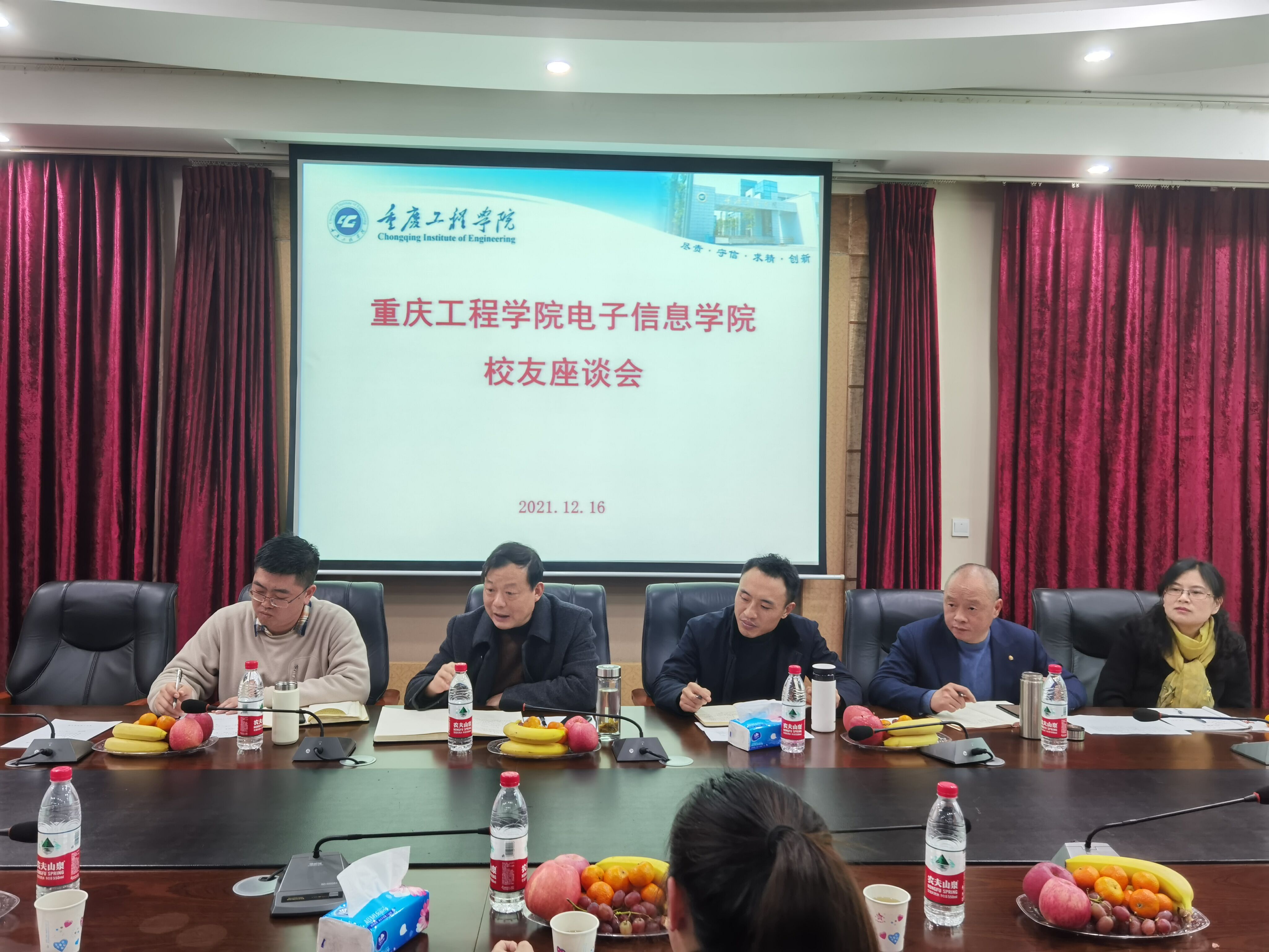 2021年12月16日下午,电子信息学院组织召开校友座谈会,邀请往届校友回校交流。院长何世彪、书记谭思宇、副院长景兴红、通信系主任许癸驹、就业科副科长卢瑛和电子信息教研室副主任武丽莉参与座谈,此次回校的校友包括2009届的王兵、吴平、向优珍,2020届的陈肖、蒋利威等,他们都在各自领域做出了突出成绩。校友们分别介绍了自身的成长经历及工作情况,为学校的教育教学提出了许多宝贵意见,何院长感谢校友们百忙之中回校交流,希望双方在实践教学、素质教育、项目合作等方面加强联系,整合校友资源发挥校友优势。