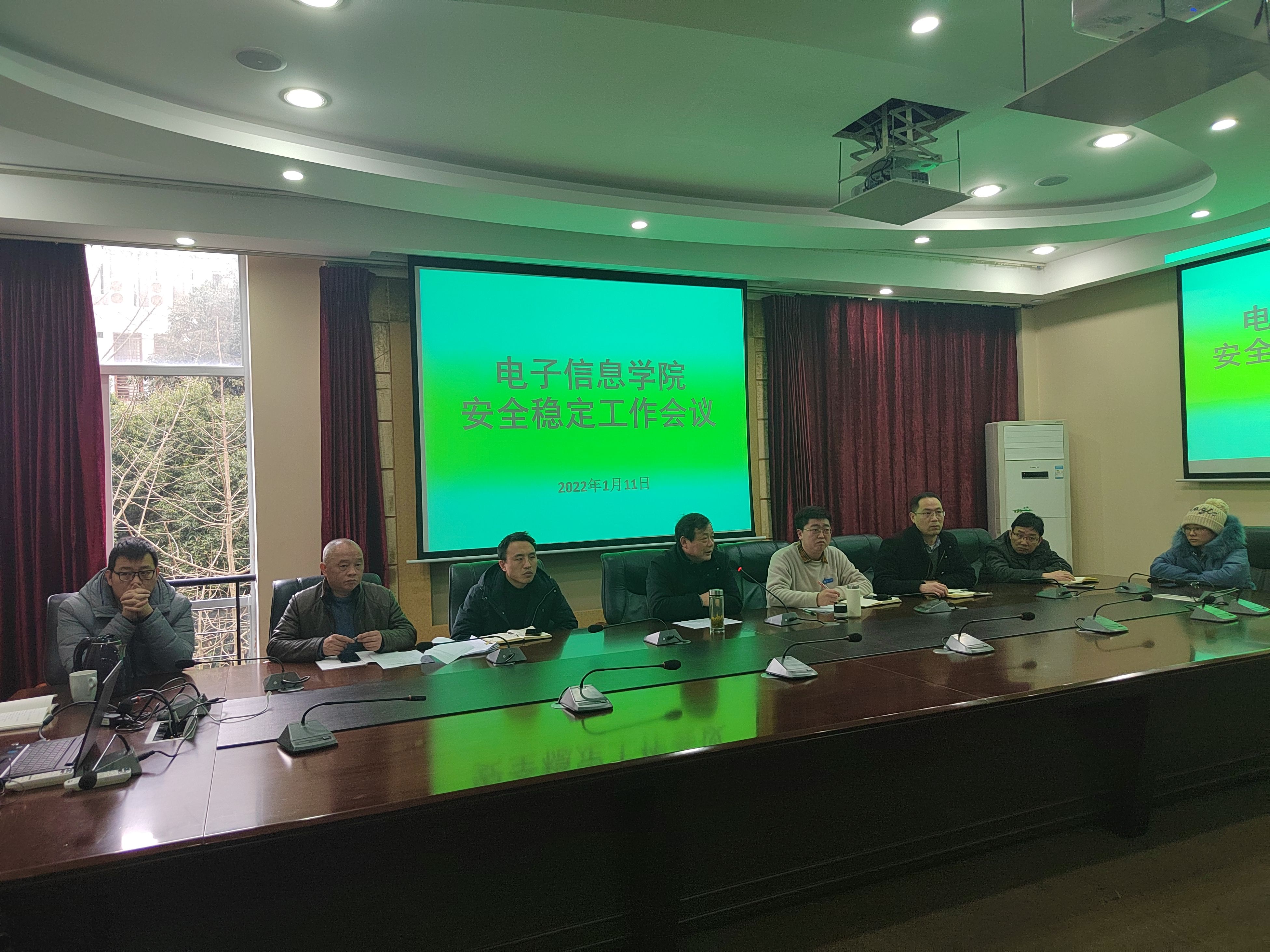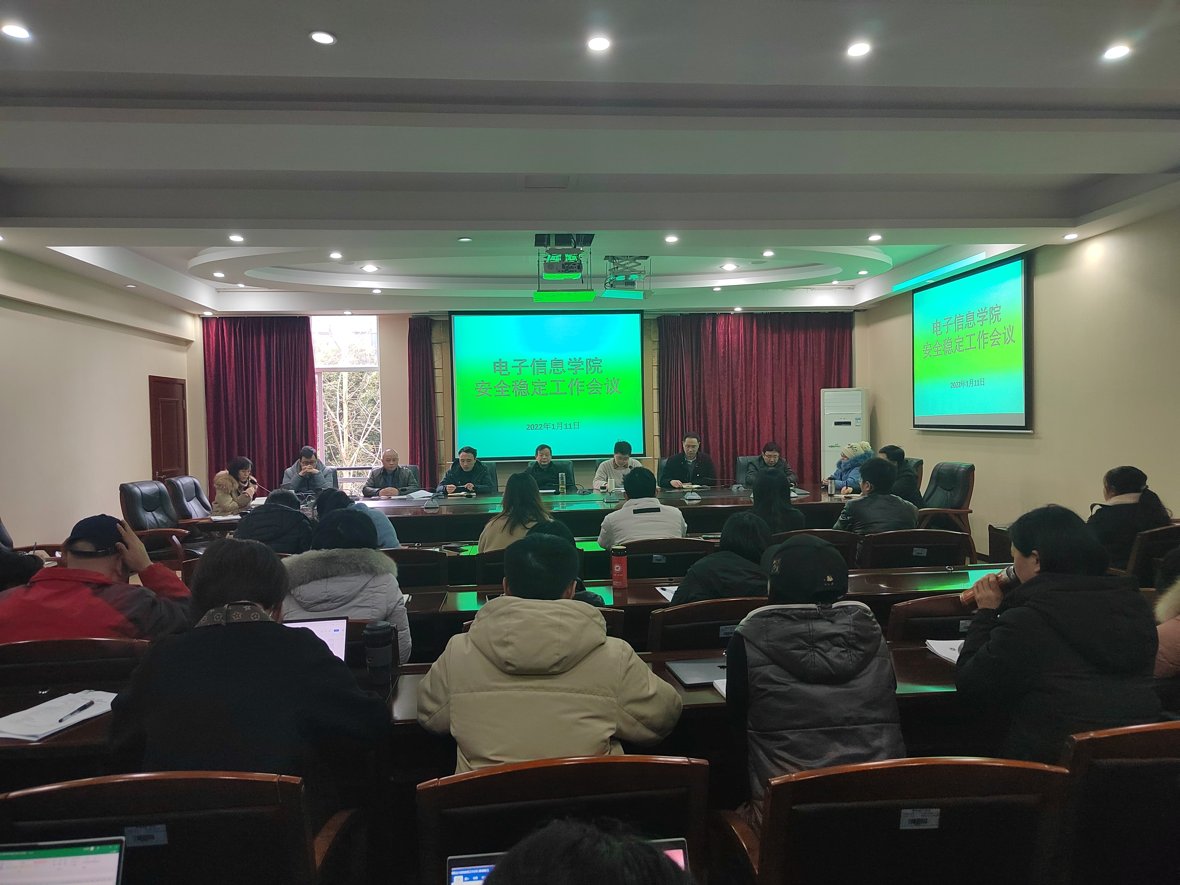 2022年1月11日,电子信息学院在第七会议室召开安全稳定工作会,会议由党总支书记谭思宇主持,全院教职工参加。