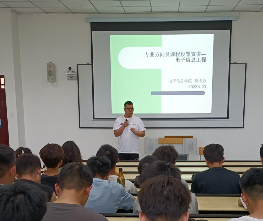 为了让电子信息工程全体2020级的同学对自己的专业有更加清楚的认知,并给同学们一些在选择专业方向的建议和指导,使同学们有更加明确的方向,4月20日,电子信息学院于第六教学楼204面向2022级电子信息工程专业全体学生开展了关于“专业方向及课程设置宣讲”就业指导讲座。