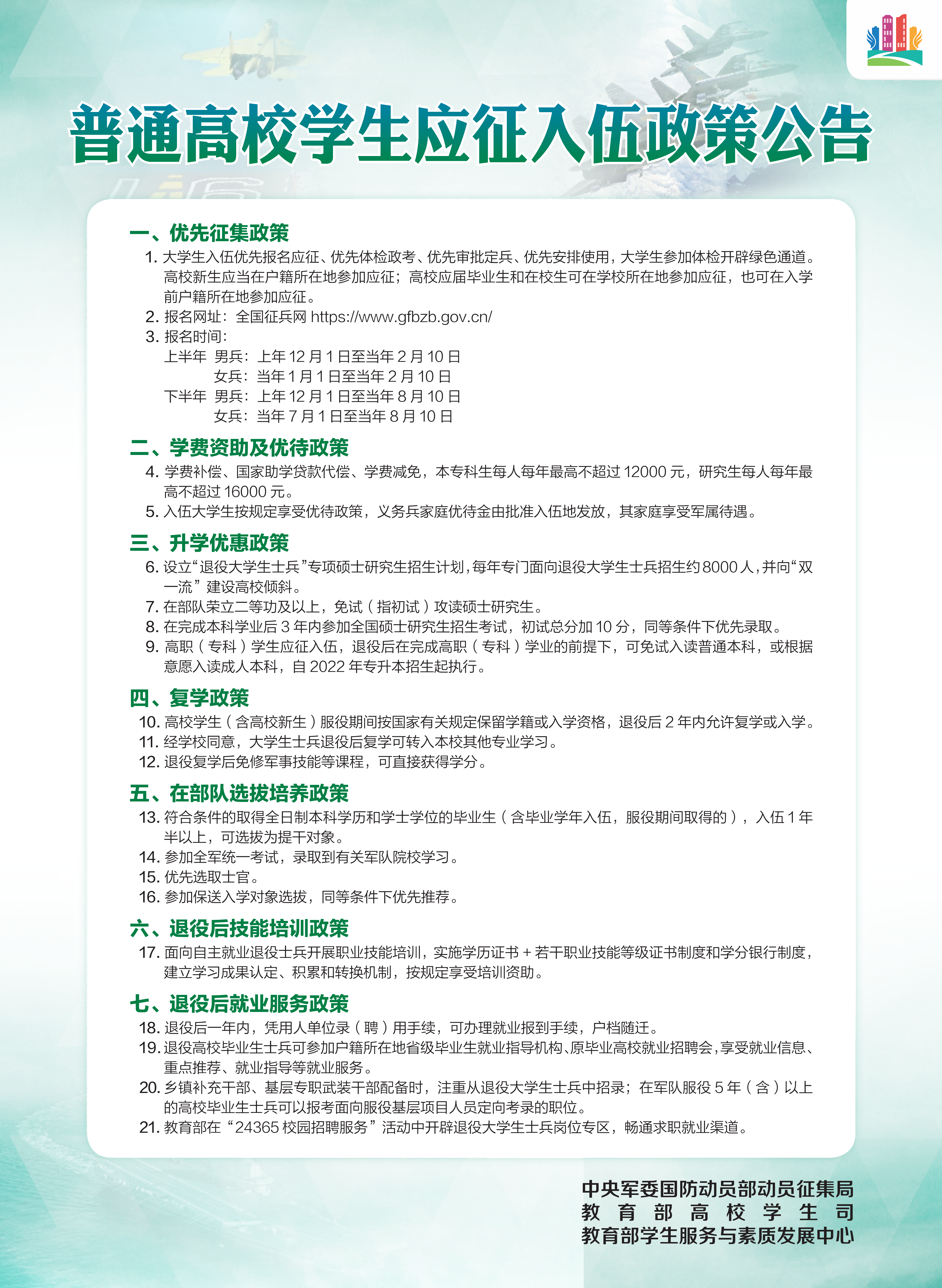 普通高校学生应征入伍政策公告