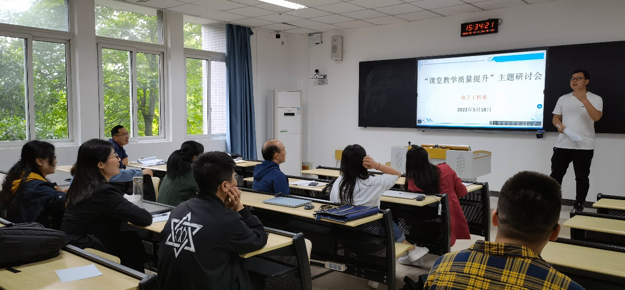 为进一步加强学风建设,提升课堂教学质量,更好地迎接本科教学合格评估,5月18日,电子系在系主任李成勇的主持下开展了“课堂教学质量提升”主题教研活动。