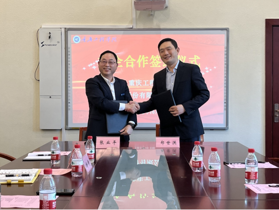 最后张业平常务副校长、郑世洪副总经理代表双方,在合作协议上签字,并交换协议文本。