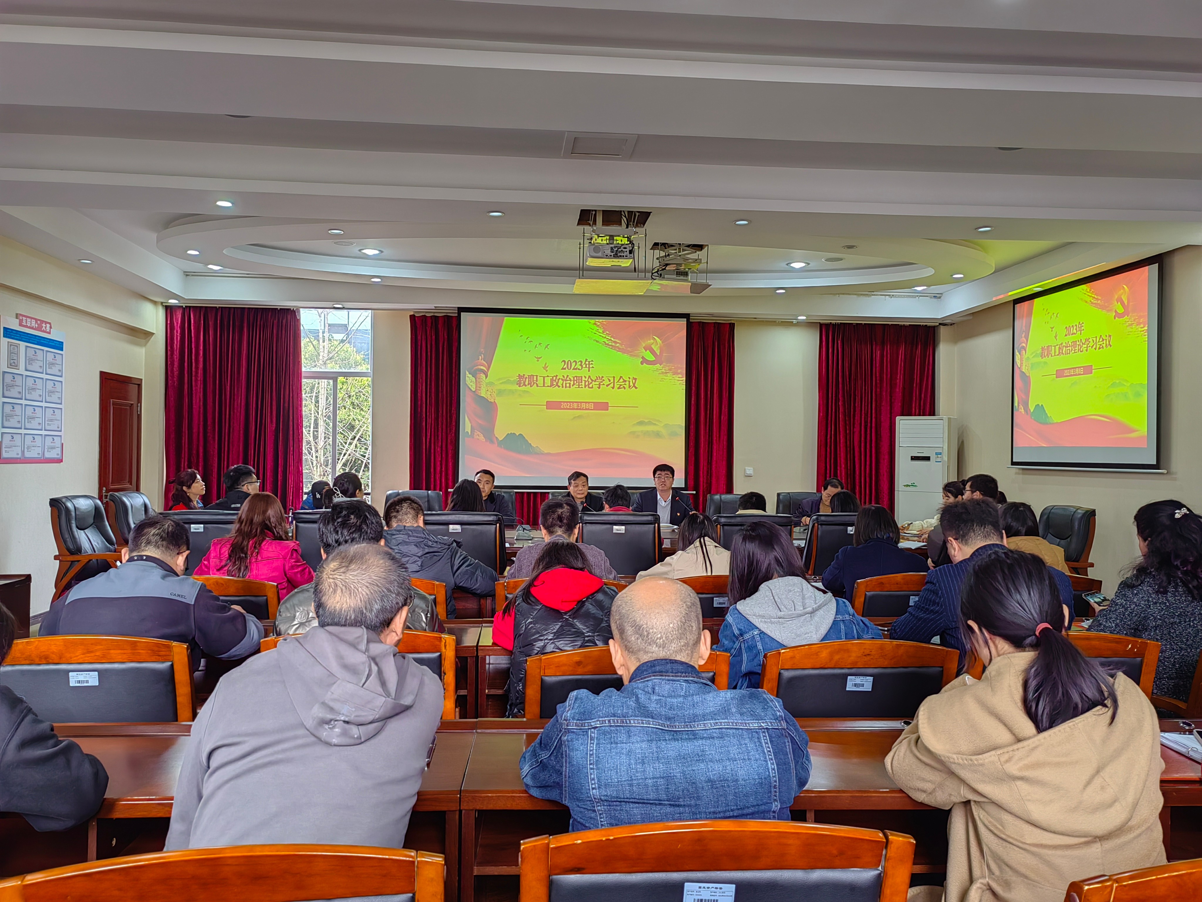 3月8日,电子信息学院党总支组织全体教职工在第七会议室开展政治理论学习,此次会议由专职组织员魏登雪同志主讲,学院全体教职工共60余人参加。