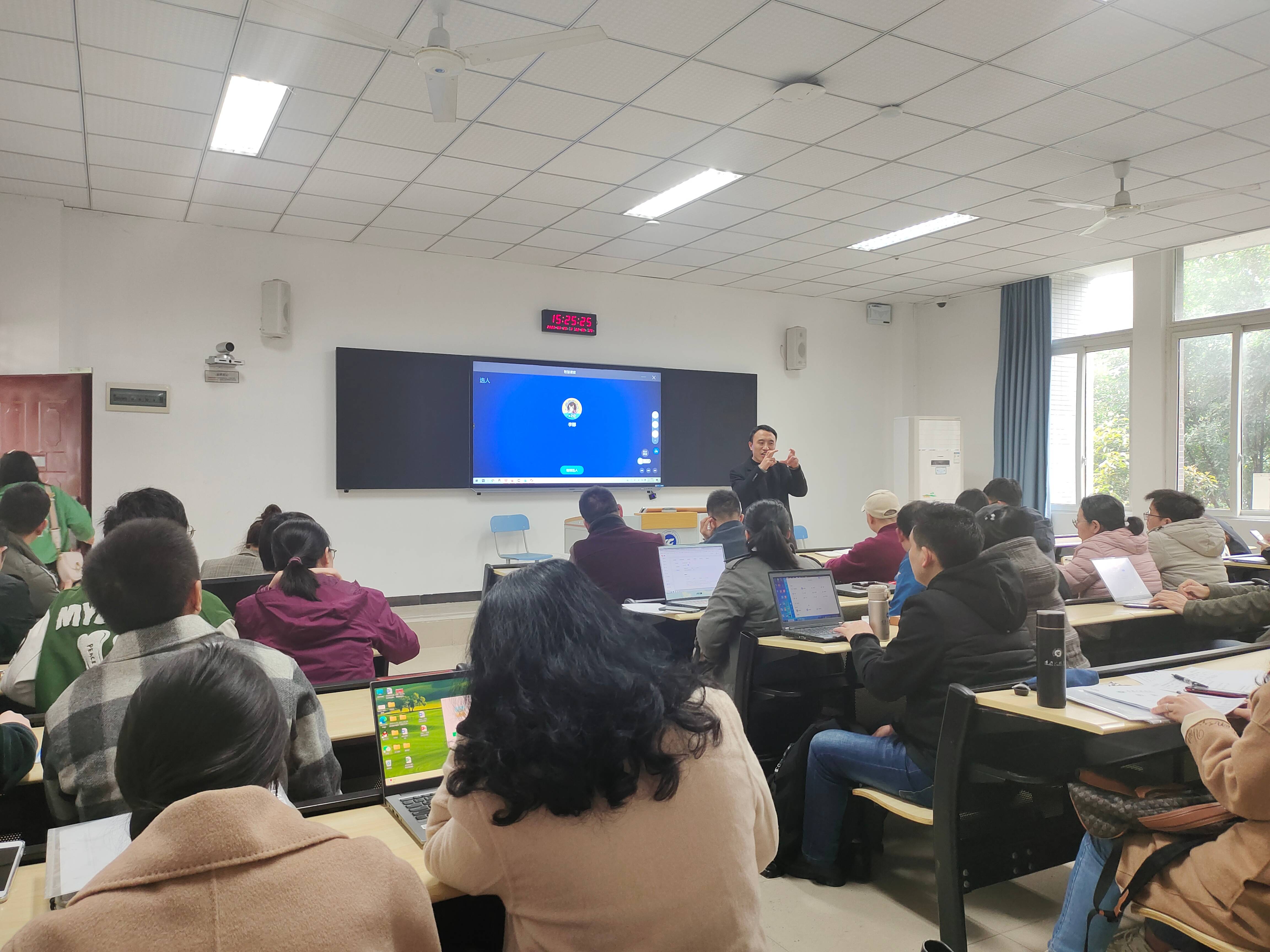3月29日14时,电子信息学院在6109教室开展了智慧课堂教学平台培训,培训由景兴红副院长主持,学校网络信息中心主任皮小军主讲。学院在校全体老师参加。