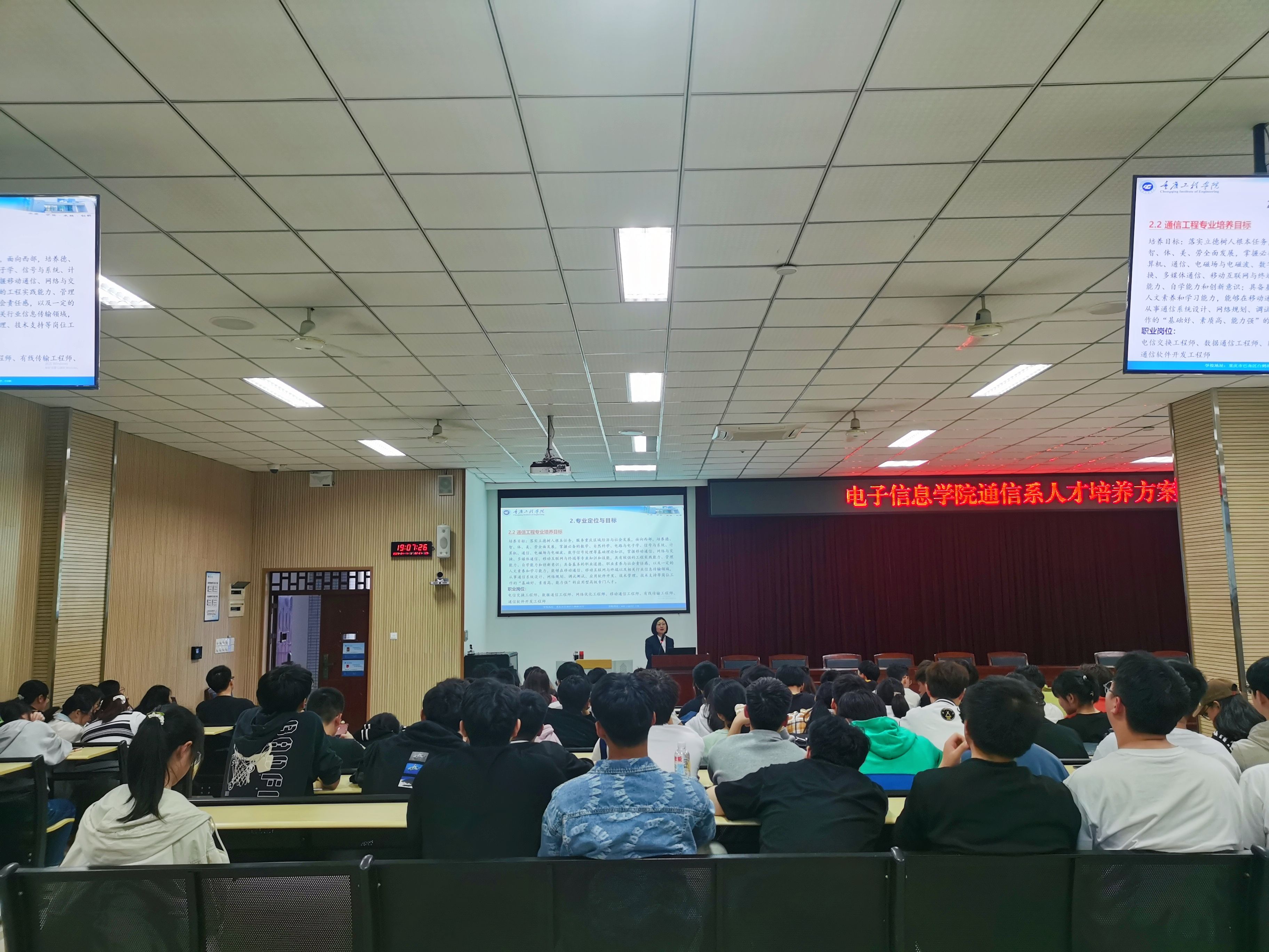 为进一步做好学生对专业的认知和课程的理解,电子信息学院通信系于2023年4月11日晚19:00在南泉校区6302报告厅开展人才培养方案宣讲,讲座由通信系副主任陈印主讲。