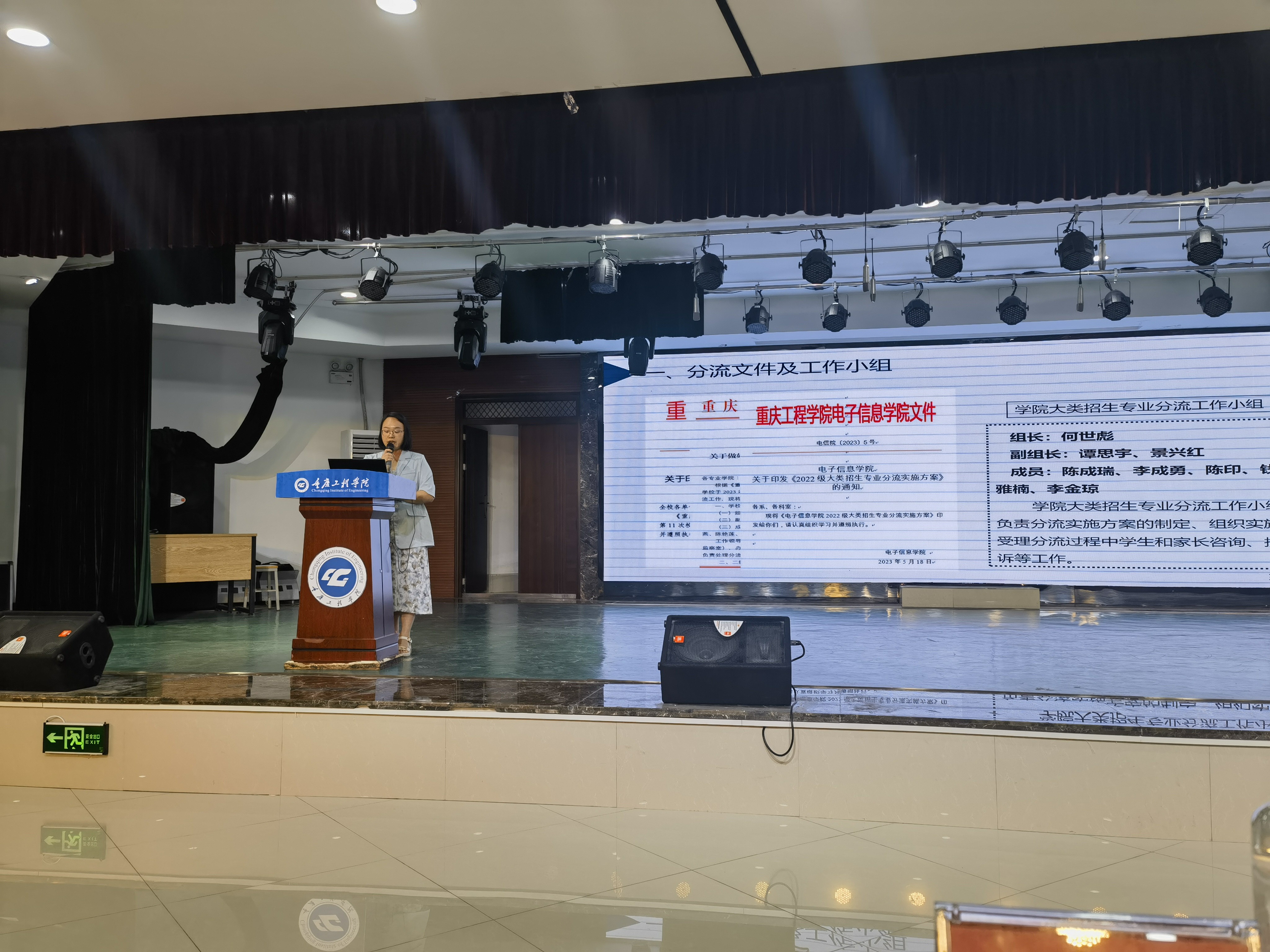 首先,李金琼副科长对《电子信息学院2022级专业分流实施方案》进行了详细介绍。她强调了在尊重学生个性发展需要的同时,兼顾社会需求、专业发展、资源配置等因素,遵循志愿优先、择优选拔的原则,按照学生现阶段取得的平均学分绩点高低,按第一志愿依次分流的原则,并就相关工作的时间节点和工作流程进行了详细说明。然后,电子系、通信系、自动化系的专业负责人分别为电子信息类和自动化类的学生分场进行了专业介绍。最后,何院长及各位老师对同学们提出的问题进行了一一解答。
