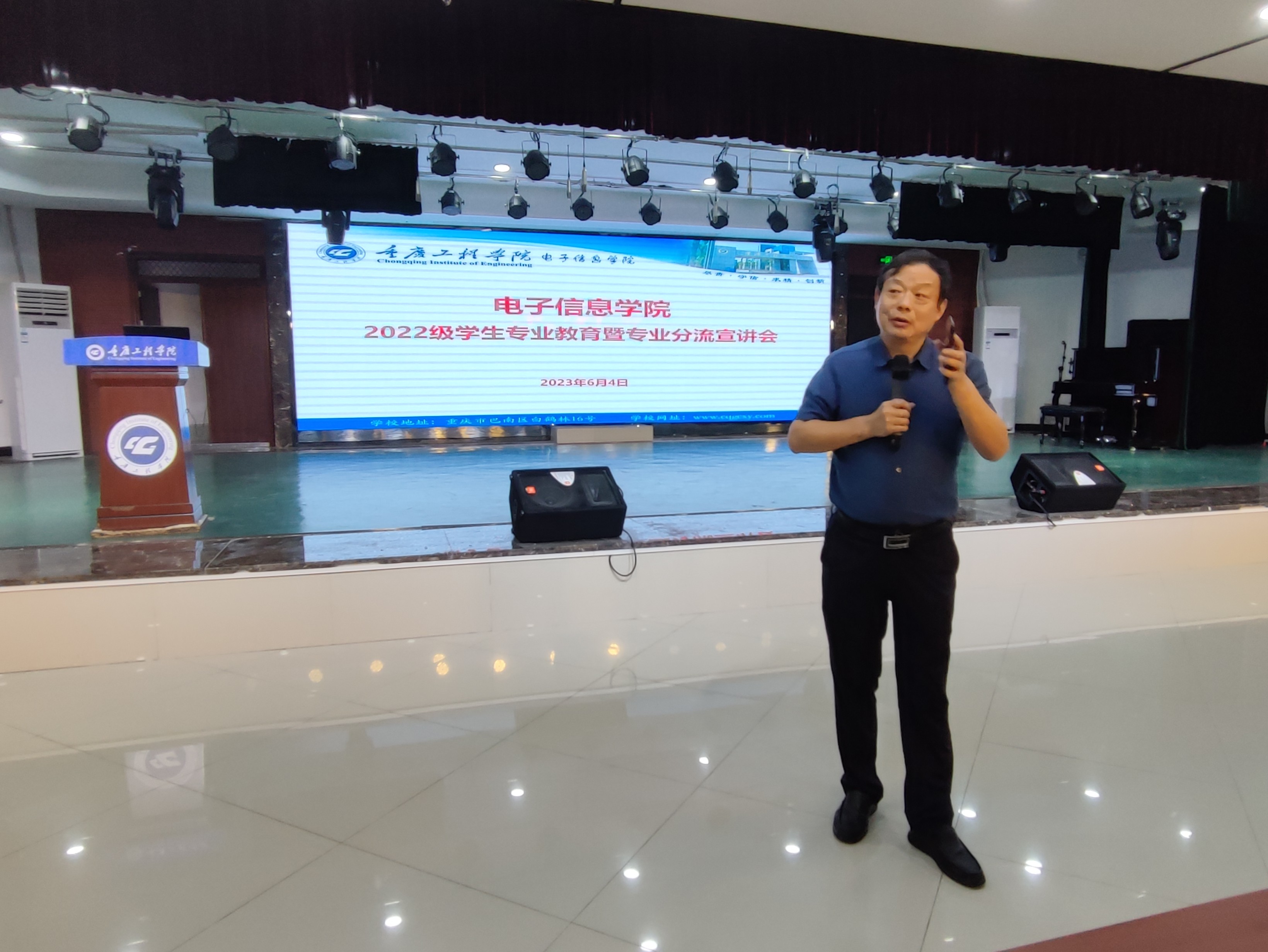 6月4日,电子信息学院院长何世彪、书记谭思宇、副院长陈成瑞,系主任李成勇、陈印、钱雅楠、教务副科长李金琼一行人赴双桥校区为电子信息学院2022级学生开展专业认知教育暨专业分流宣讲会。本次活动由谭思宇书记主持,双桥校区陈军、秦琴、赵燕茹等老师及2022级全体学生参加此次活动。
