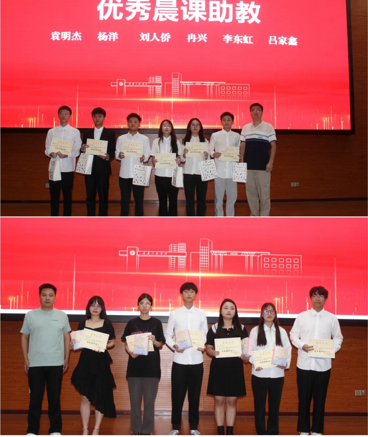 会议开始前,播放了视频让全体同学深刻体会到两年晨课的付出与收获。伴随着庄严的国歌声在会场响起,本次表彰大会正式开始。首先,由学院分团委书记景晖祥老师宣读表彰决定,学院领导分别为学院“优秀演讲达人”、“优秀晨课助教”、“优秀组织班级”进行颁奖。其次,由获奖同学代表依次进行发言并请专业同学进行才艺展示。最后,由电子信息学院院长何世彪讲话,他在大会上肯定了所有晨课助教及辅导员老师的辛苦付出,同时寄语全体21级学生要再接再厉,课程结束不代表学习结束,只有在一次次在上台中锻炼自己才能成为更卓越的人。