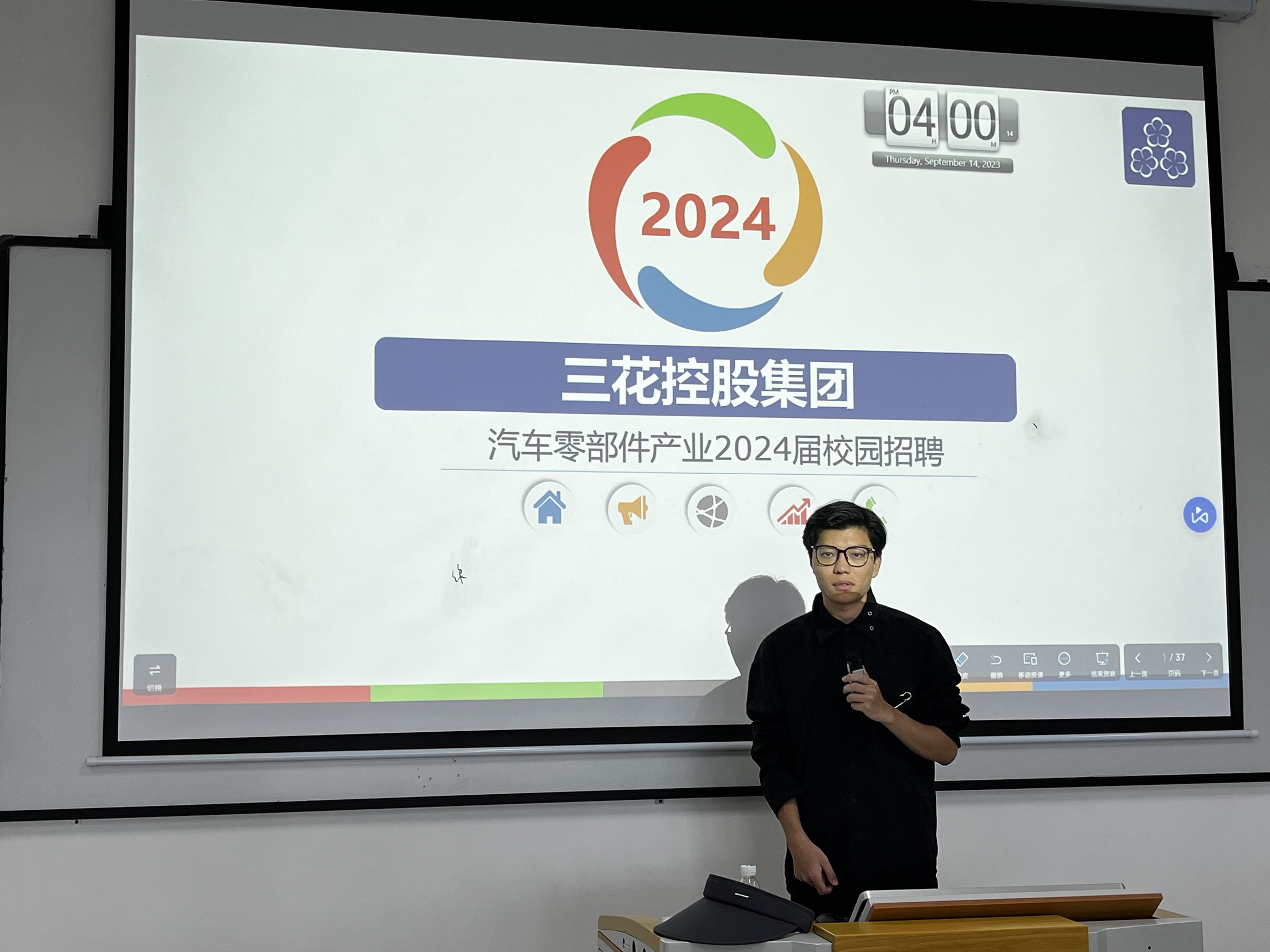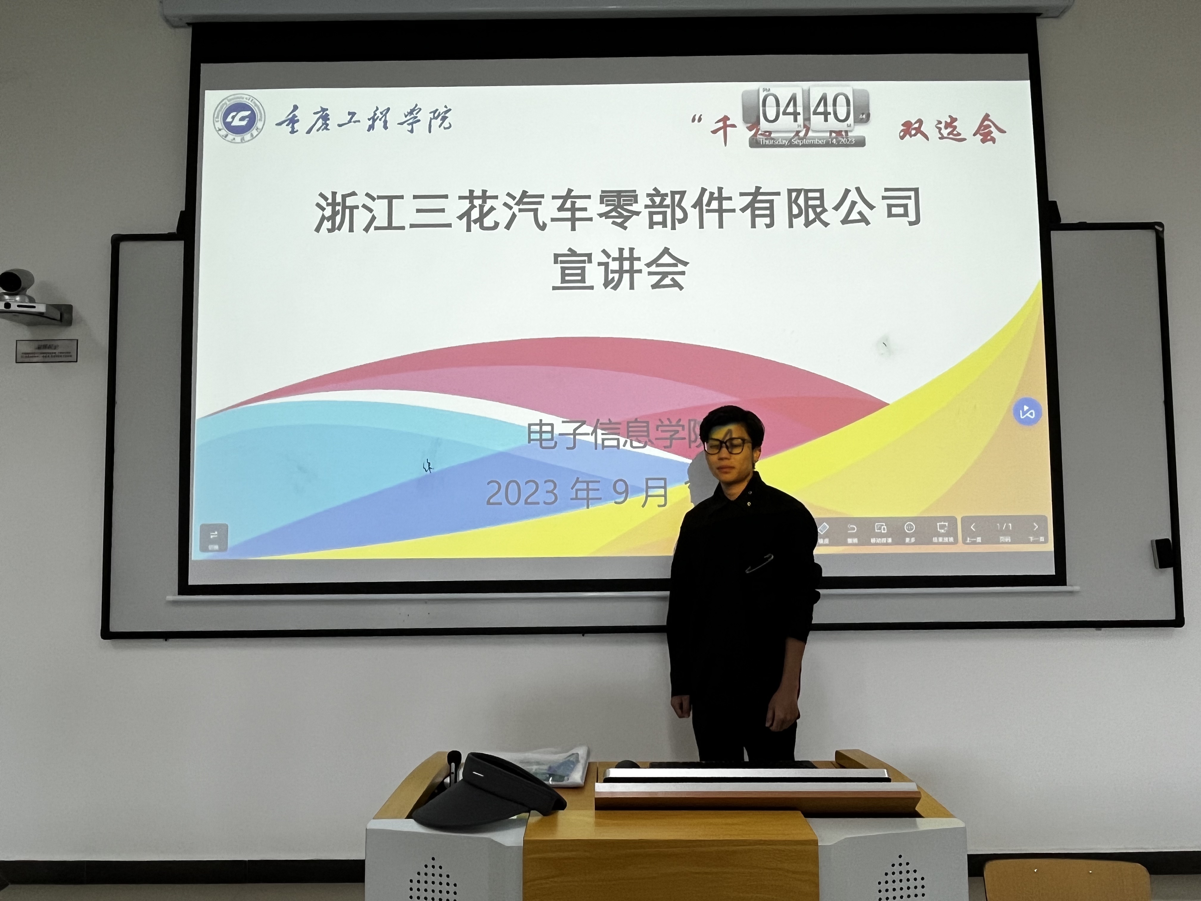 9月14日下午16:00,浙江三花汽车零部件有限公司于在6304举行宣讲会,参加的学生主要来自电子信息工程、自动化和机器人工程专业,共计70人。