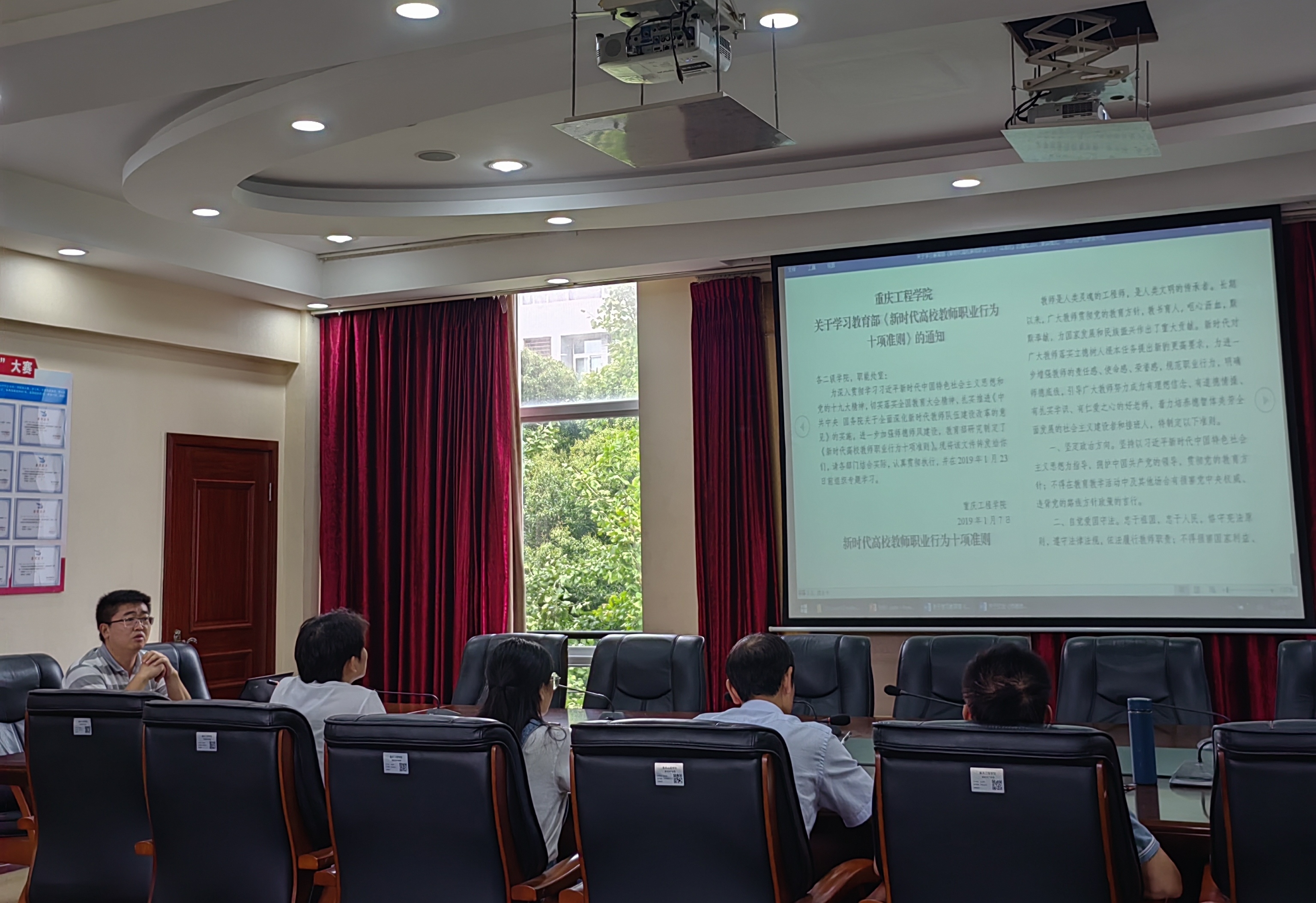 学院党总支书记谭思宇同志围绕教育部印发《新时代高校教师职业行为十项准则》和学校印发印发《师德师风负面清单及失范行为处理办法(修订)》,结合真实案例和实际教学过程中可能发生的情况做了详细的解读。谭书记强调,作为人民教师,要潜心教书育人,要时刻关注学生身心健康,要秉持公平诚信,坚持原则、处事公道、光明磊落、为人正直,要着力为国家培养德智体美劳全面发展的社会主义建设者和接班人。