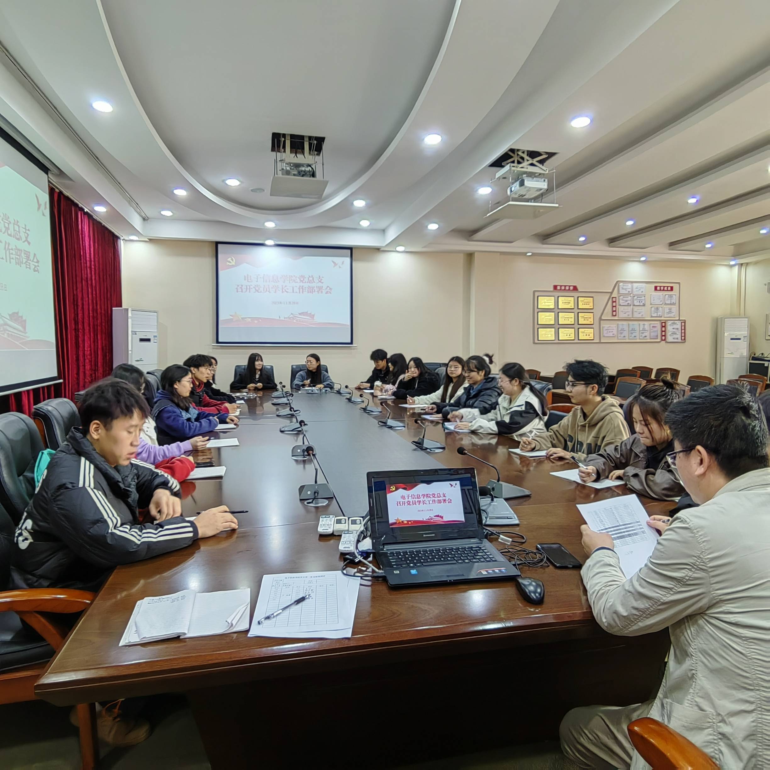 11月28日,电子信息学院党总支组织召开党员学长工作部署会。会议由党总支书记谭思宇主持,学院专职组织员、学生第一、第二党支部拟发展预备党员参加。