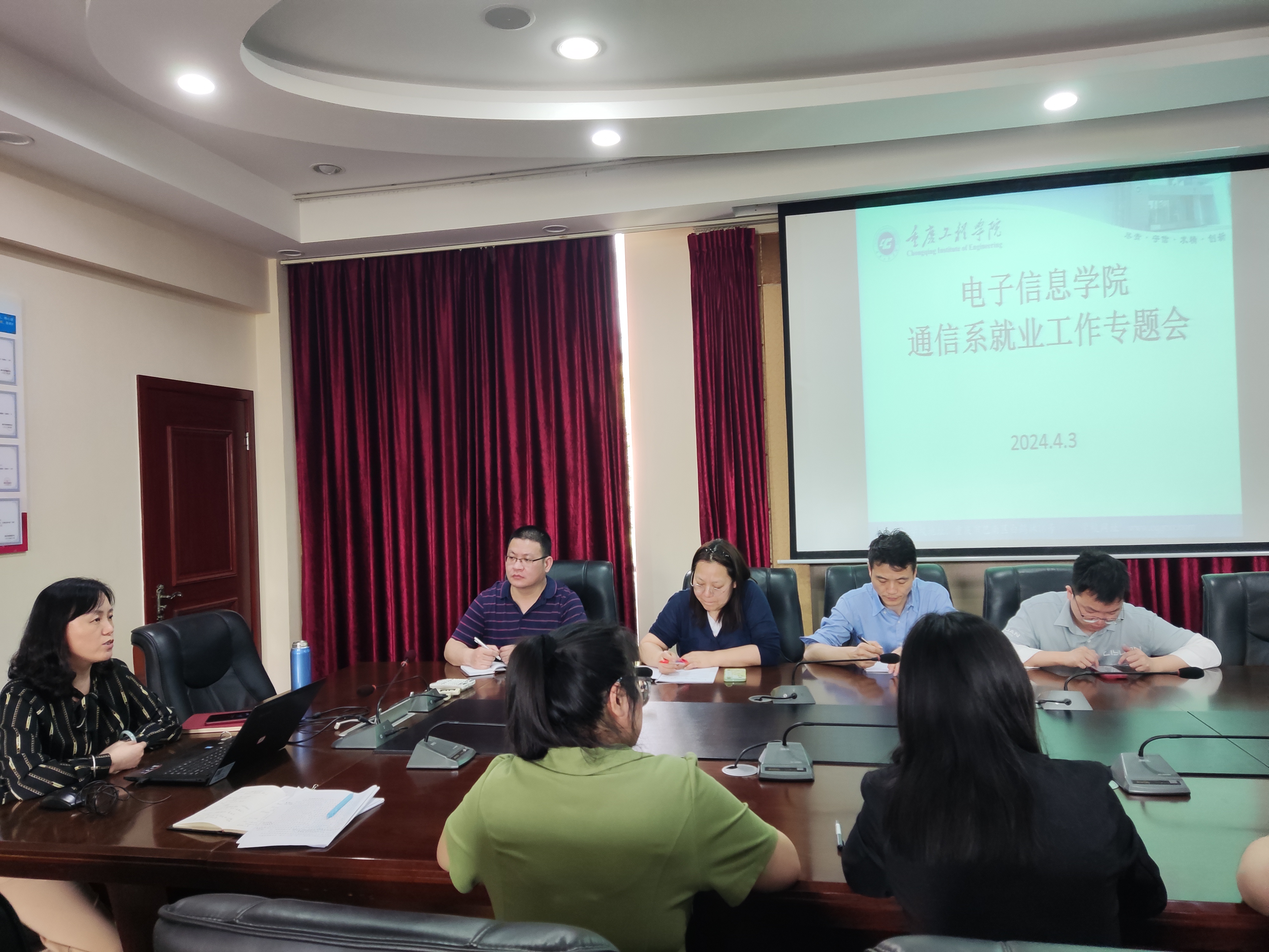 4月3日下午,为进一步推动就业工作的高效开展,确保毕业生顺利就业,电子信息学院党总支书记谭思宇与就业科副科长卢瑛分别走访了电子系、通信系,与系主任及指导老师进行了深入的就业工作交流,并召开了专题会议。