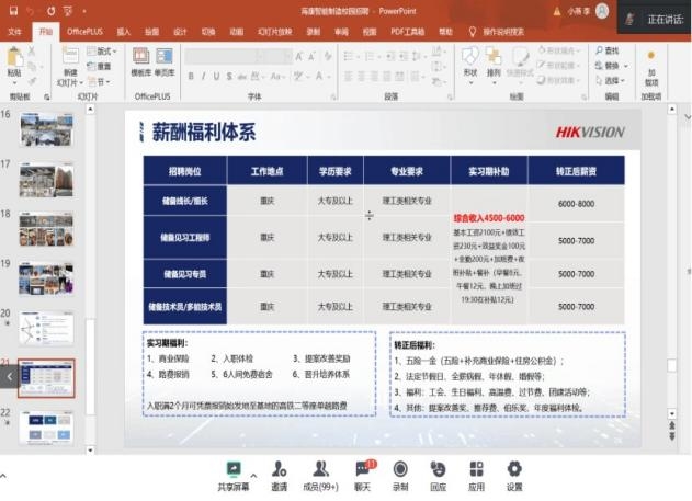 9月11日下午,重庆海康威视科技有限公司在腾讯会议平台成功举办了线上宣讲会,吸引了全校25届共计100名学生积极参加。