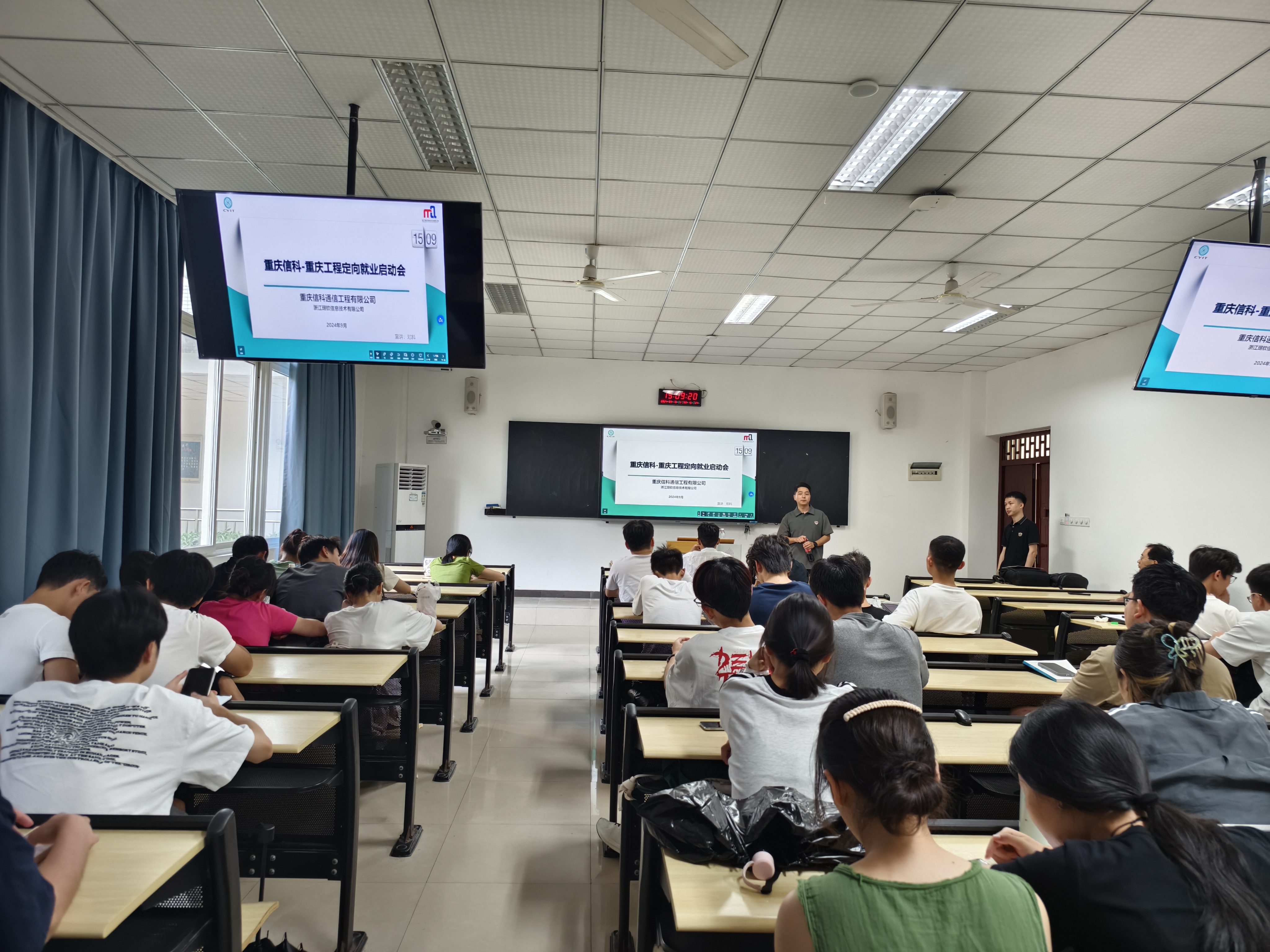 9月18日下午,重庆信科通信工程有限公司在我校6110教室举办了宣讲会,我院近50名同学参加。公司邓经理向在场的同学们详细介绍了公司的发展历程、企业文化、业务范围、技术创新成果以及未来发展规划等核心信息。