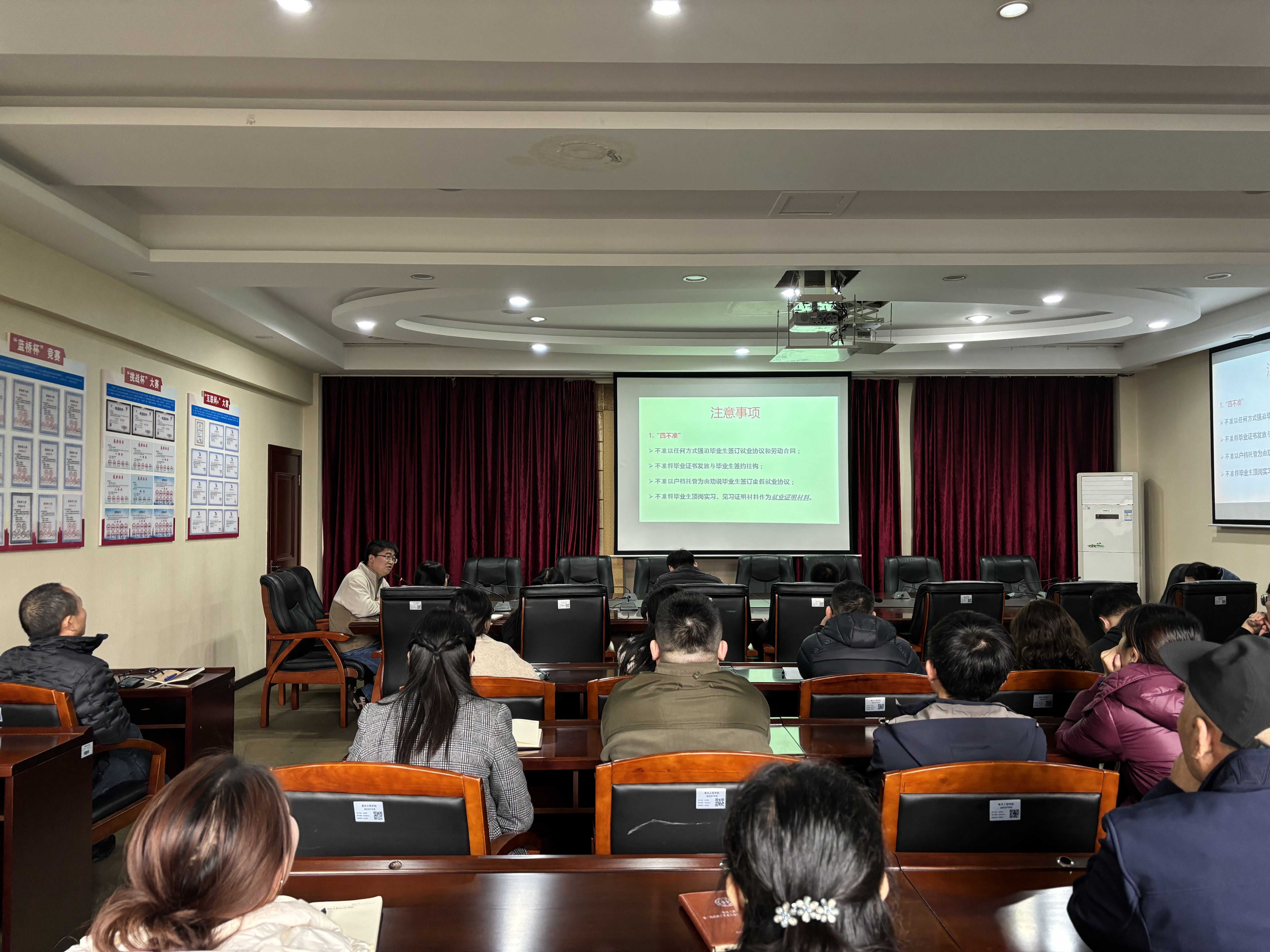 会上,谭书记着重强调了就业工作中的 “四不准” 原则,清晰界定了就业科、辅导员、就业专员、班导师以及实习指导老师各自的就业工作范畴与职责。谭书记要求全体教职工在各个环节都要为学生提供精准且全面的就业指导,积极引导学生树立正确的就业观与择业观,全力做好稳岗工作。此外,还需特别关注特殊困难群体以及就业困难的学生。对于在校学生,实习指导老师每周至少要组织一次与学生的见面沟通活动,在指导毕业设计的同时,也要做好就业指导工作。