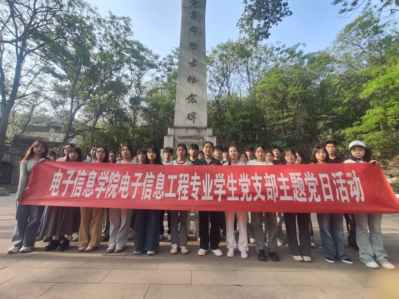2025年4月9日,电子信息学院电子信息工程专业、通信工程专业学生党支部组织党员及发展对象前往重庆南泉烈士陵园,开展“承先辈遗志,绽青春担当”清明祭英烈主题党日活动,通过实地缅怀革命先烈,深化党史学习教育,激励青年党员传承红色基因、勇担时代使命。