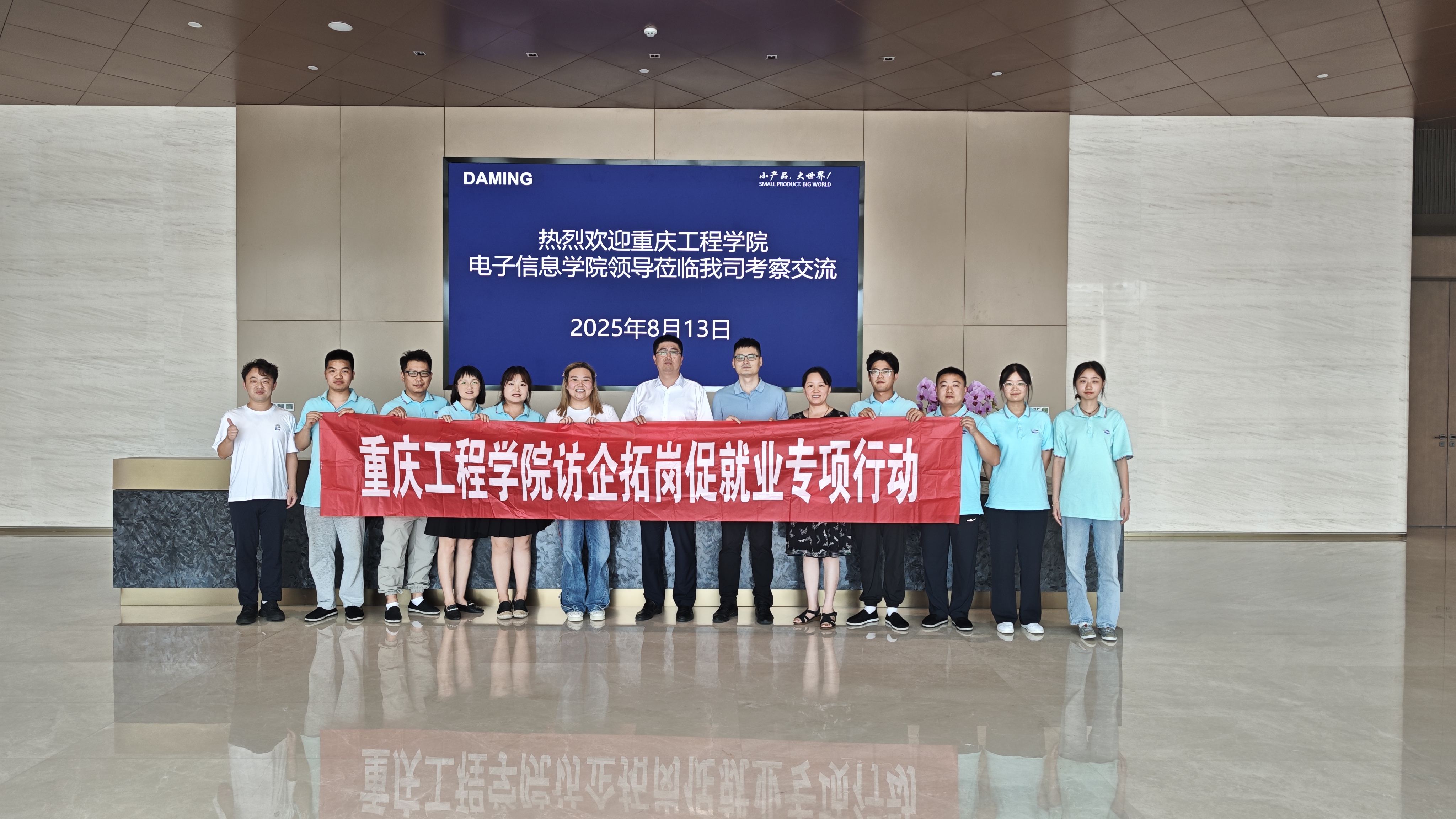 8 月 13 日下午,电子信息学院党总支书记谭思宇带队,携院长助理张仁永、就业科卢瑛及陈军老师等一行 4 人,前往大明电子(重庆)有限公司开展走访交流活动。