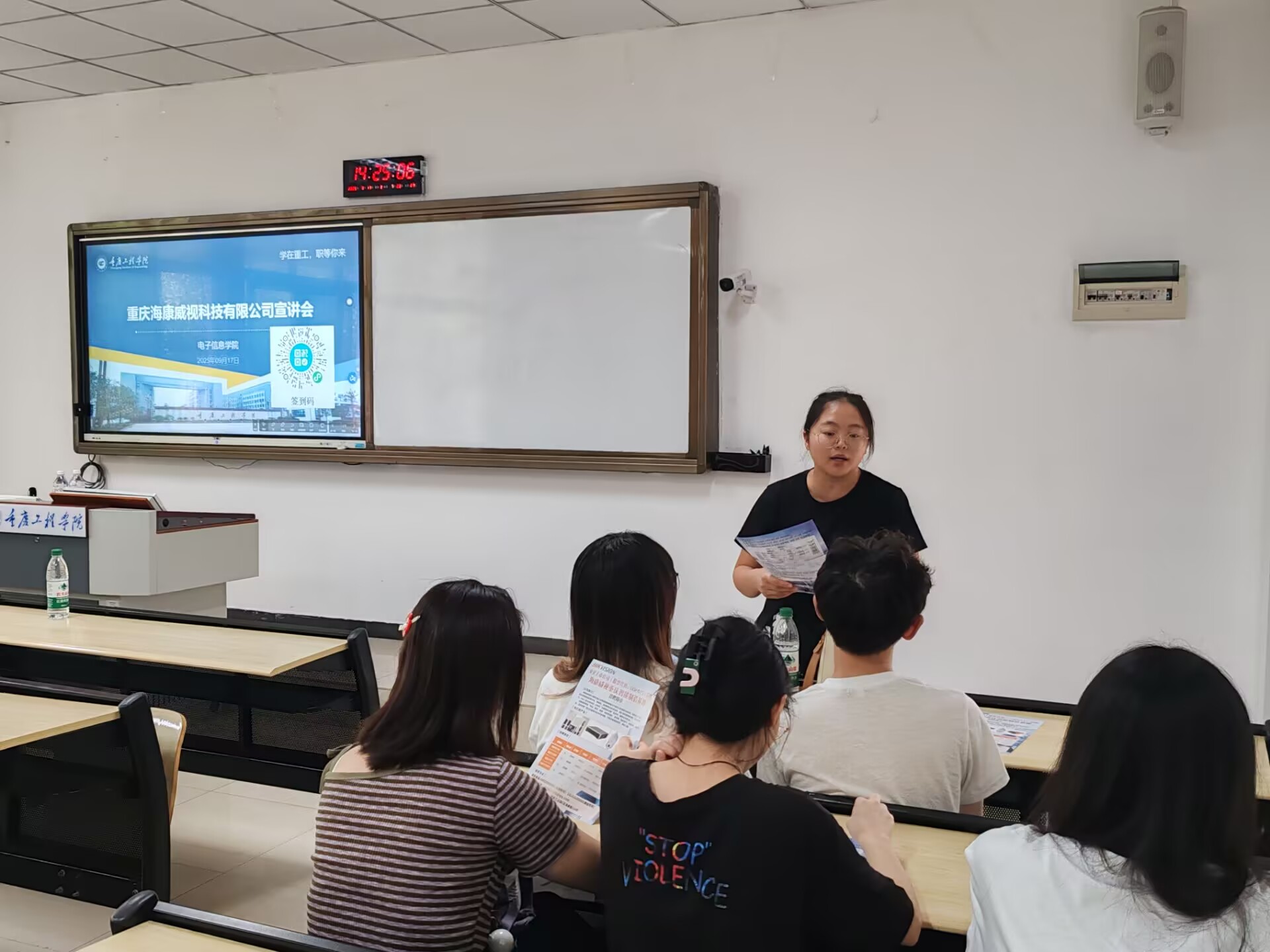 17 日 14 时,重庆海康威视科技有限公司在 6102 教室率先开讲。企业代表围绕公司背景、企业文化、人才培养体系、薪酬福利政策等内容作系统介绍,重点解读管培生“快车道”成长路径。