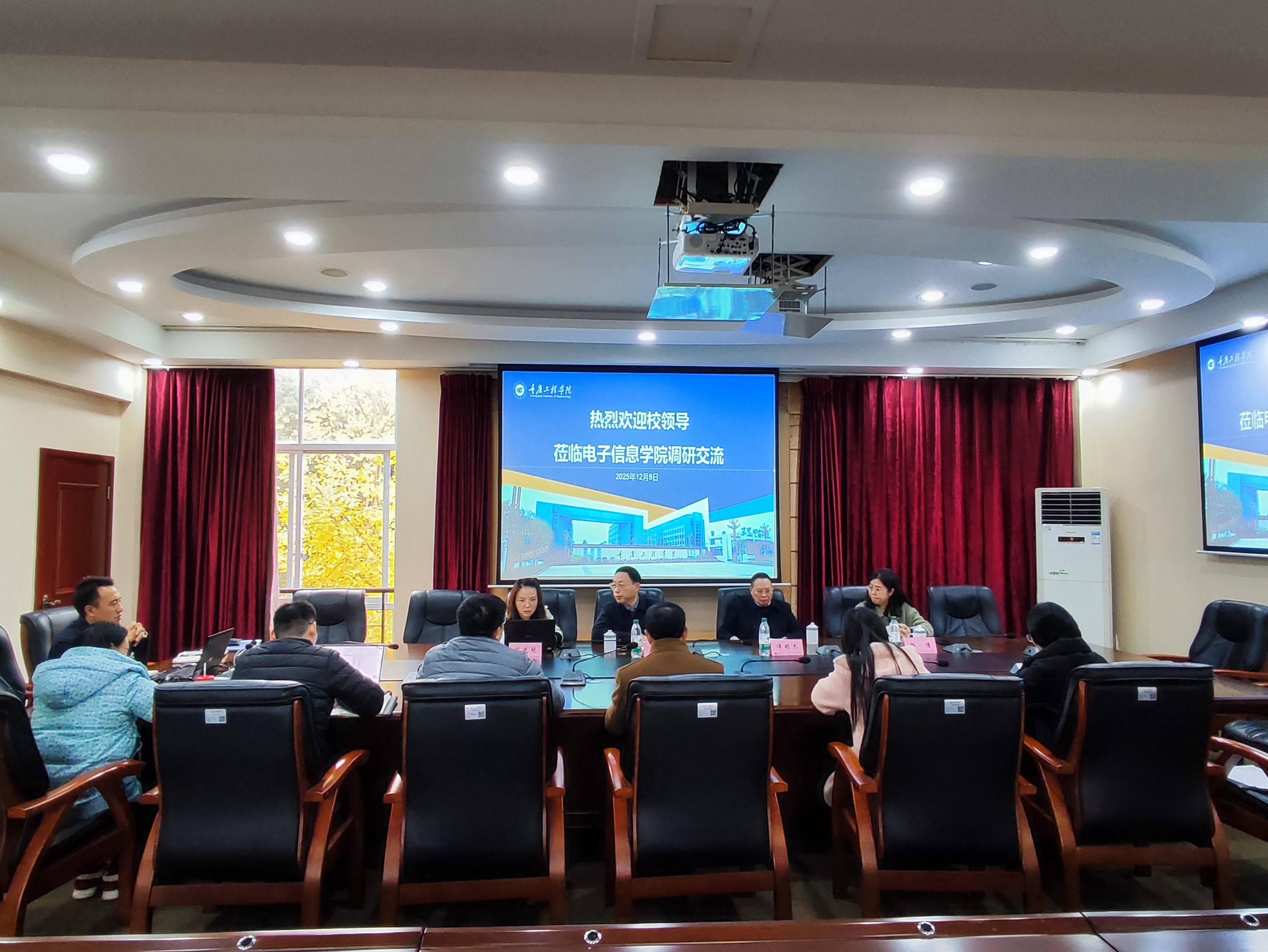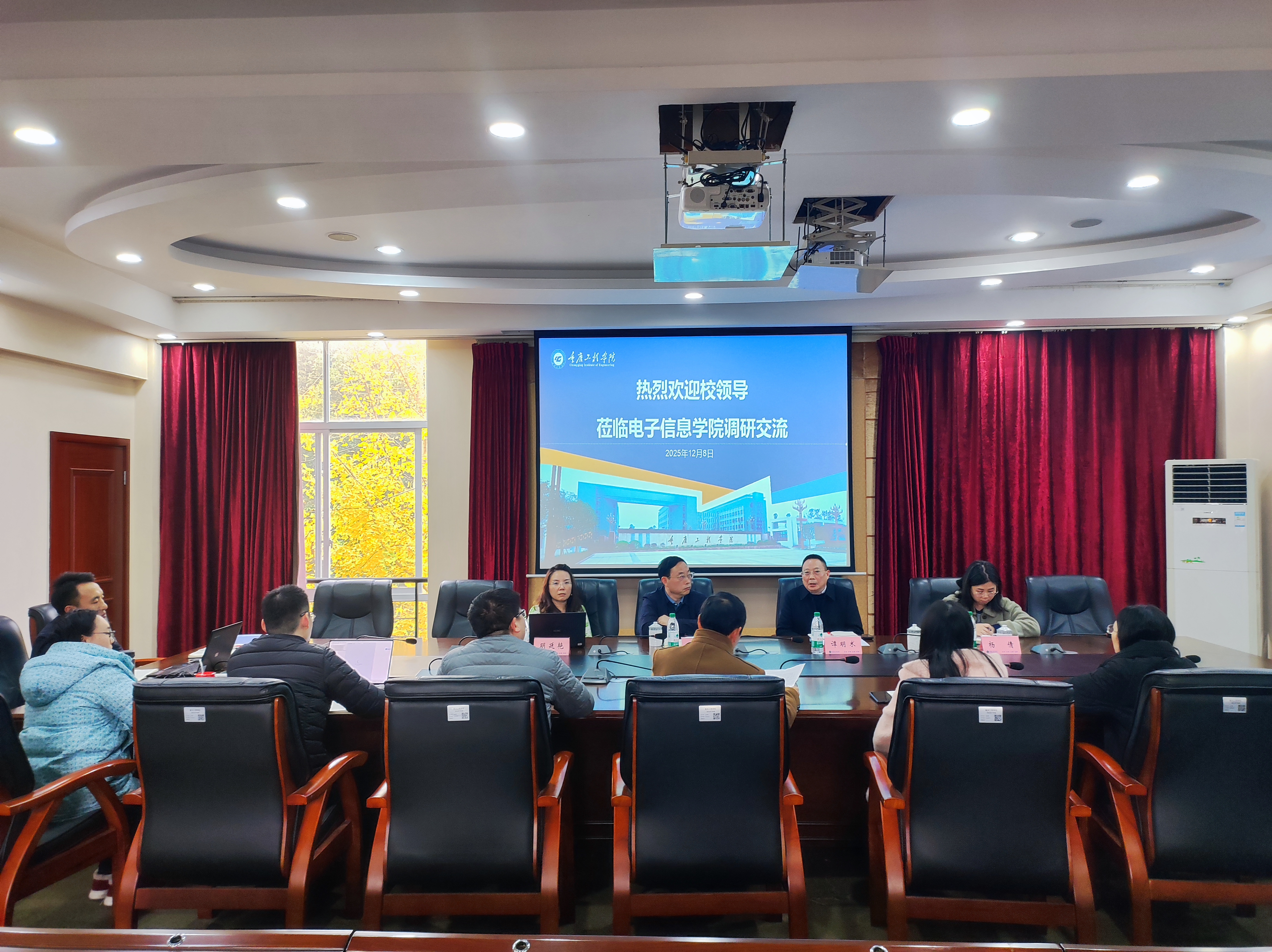 为深入贯彻落实学校关于深化应用型人才培养发展新需求,进一步优化学科专业布局、创新人才培养机制、强化师资队伍支撑。2025 年 12 月 8 日,党委副书记兼常务副校长张业平、副校长谭明术一行到学院围绕电子信息学院人才培养工作开展调研指导工作。此次会议由学院院长主持,学院领导班子、教务科长及各专业负责人参与座谈交流。