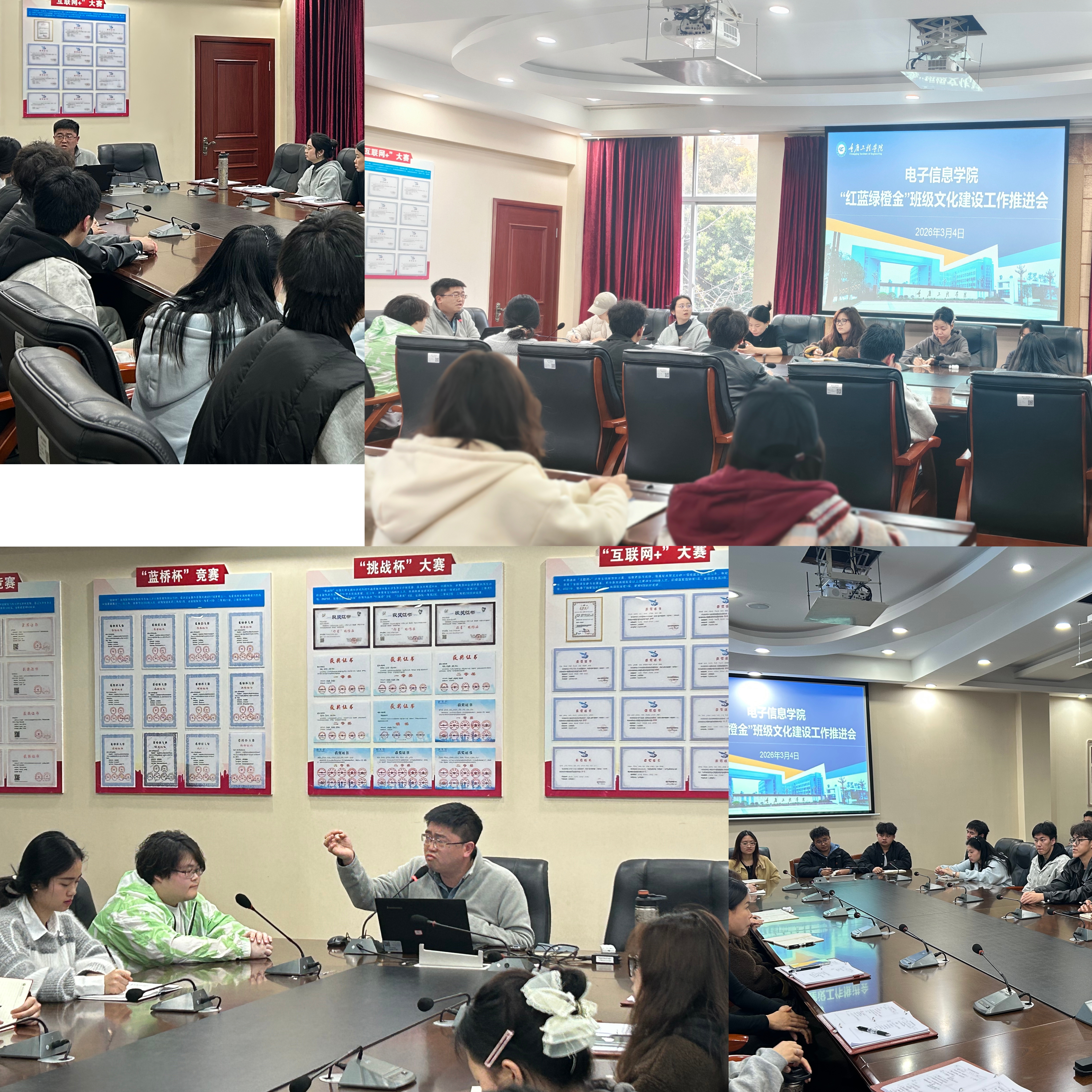 为深化学风建设,引导学生走出社区、走进教室、图书馆与实验室,营造勤学善研、团结向上的班级氛围,近日,电子信息学院召开红蓝绿橙金班级文化建设推进会。学院党总支书记谭思宇、全体辅导员及各年级班委参会。