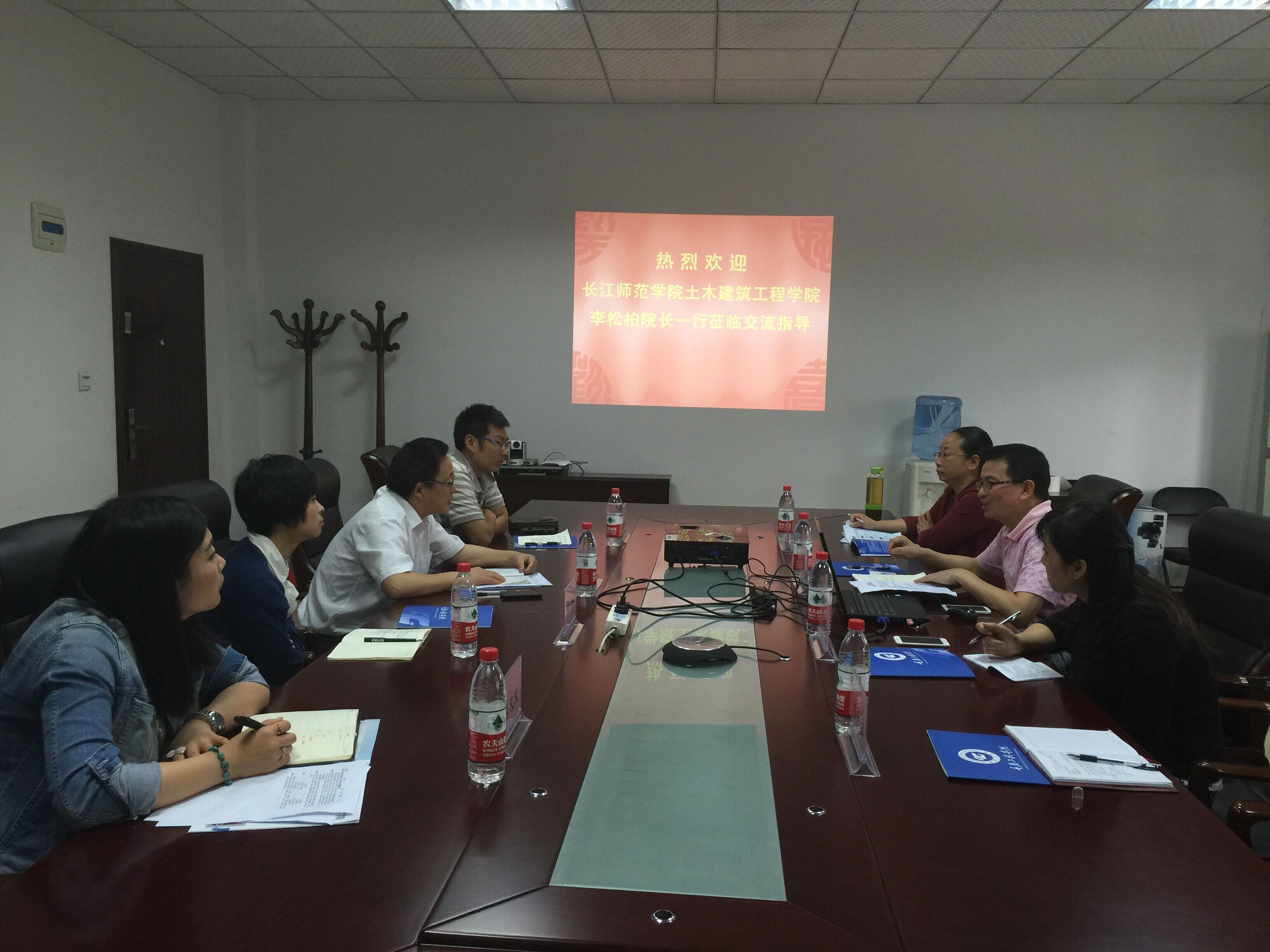 2015年5月13日9:00,长江师范学院土木建筑工程学院李松柏院长一行四人来校开展工程造价专业办学经验交流,管理学院院长简玉刚、管理学院副院长李玲及工程造价专业老师余萍丽等在学院第三会议室接待了李松柏院长一行。双方就工程造价专业发展定位、人才培养模式与特色、师资队伍建设、实践教学体系建设与实施、教学研究与改革、校企合作等进行深入的交流与探讨。简玉刚院长还针对我校2014年工程造价本科专业的申报情况进行了交流与分享,并希望长江师范学院在2015年申报工程造价专业能够成功。交流会后简玉刚院长陪同李松柏院长一行参观了我校校史馆、实习楼、实训楼等。通过本次校际间专业交流,增进了长江师范学院土木工程学院与重庆工程学院管理学院之间的互动沟通,为后期双方之间的交流打下了良好基础。