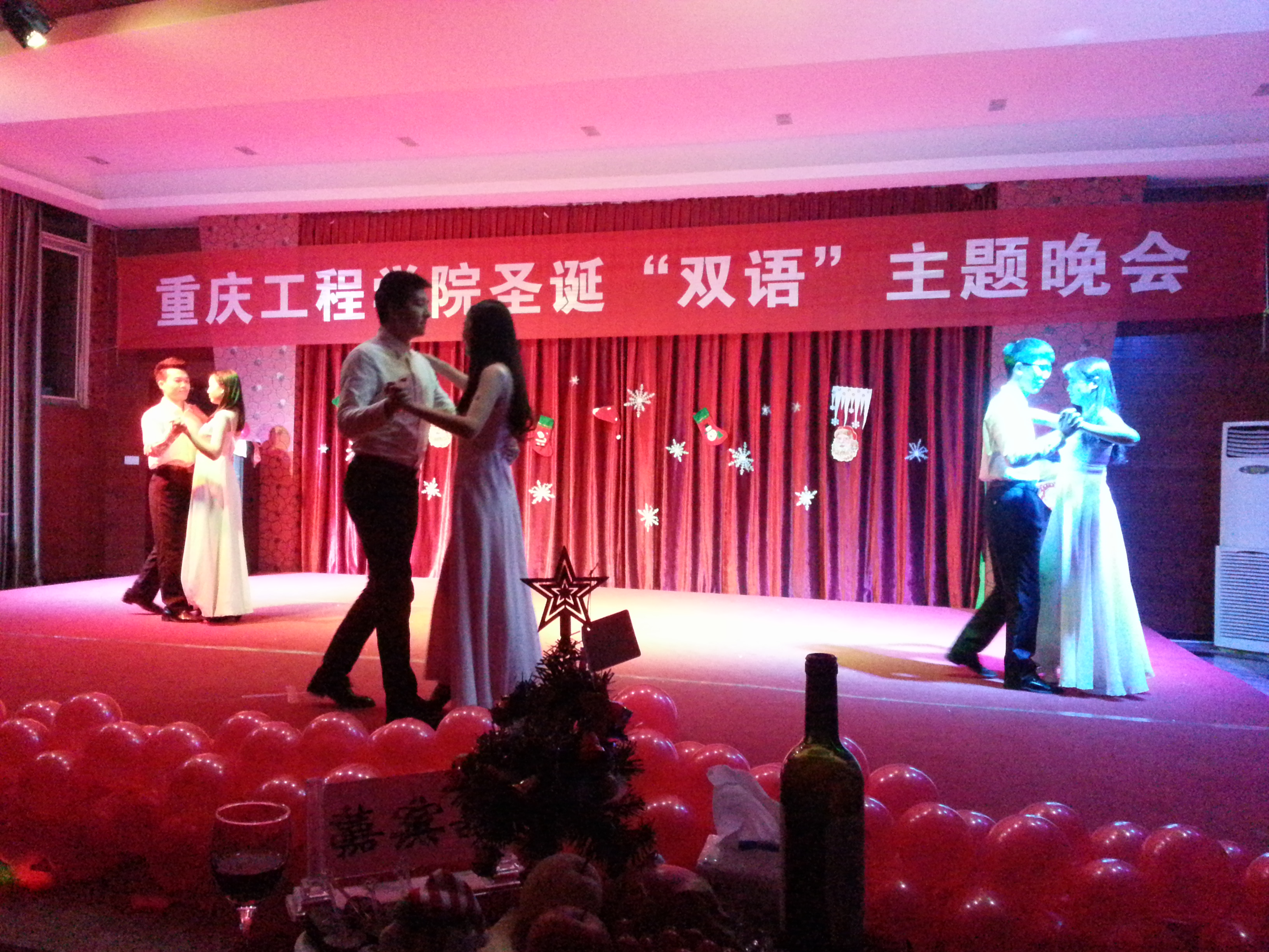 2015年12月22日18:30-20:30,管理学院在多功能厅成功举办“圣诞双语主题晚会”,来自管理学院商务英语专业、管理学院PMPC特色班、奥森英语协会、心理协会等班级和协会的同学共同组织、策划和自编自演了本台中英双语圣诞主题晚会。