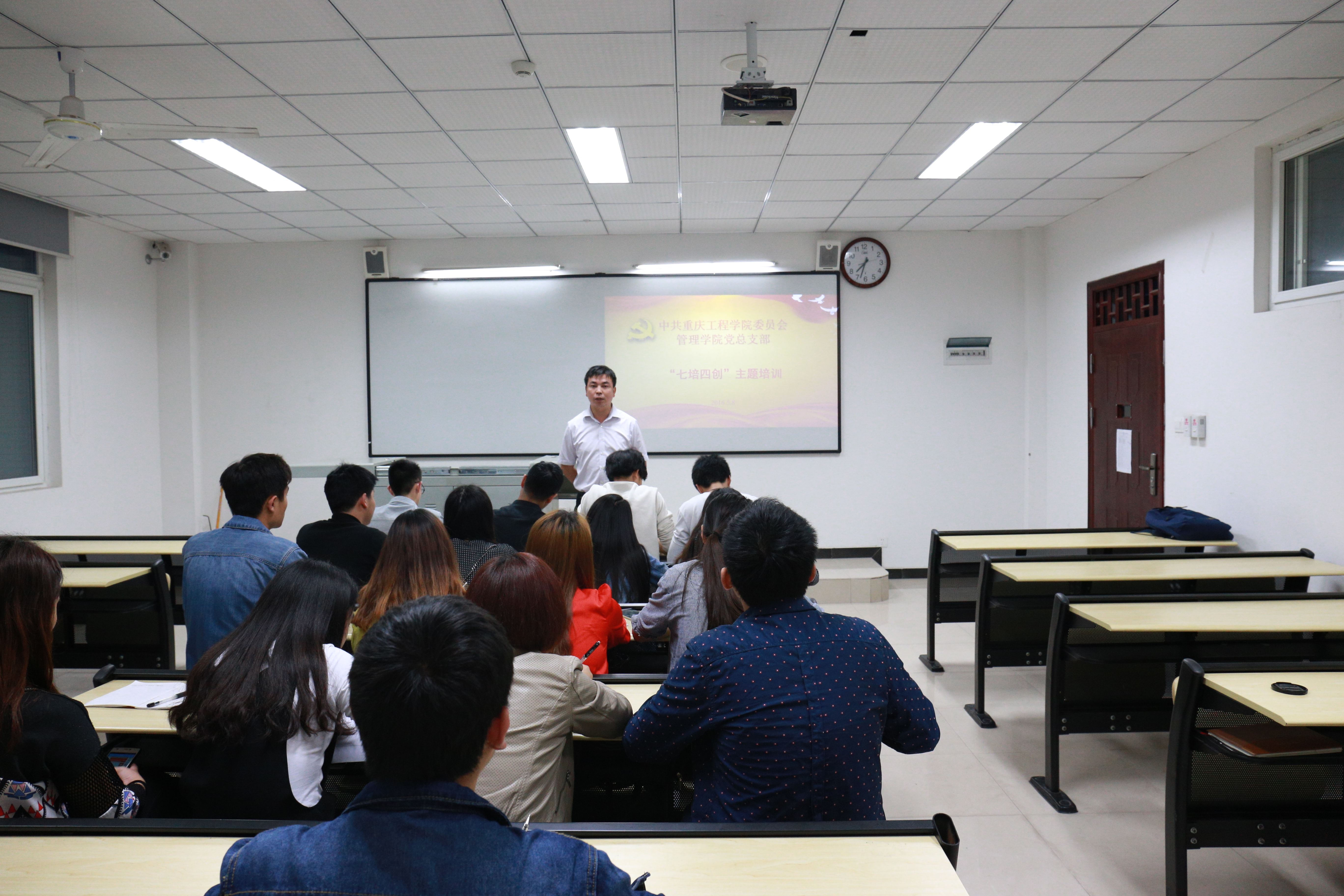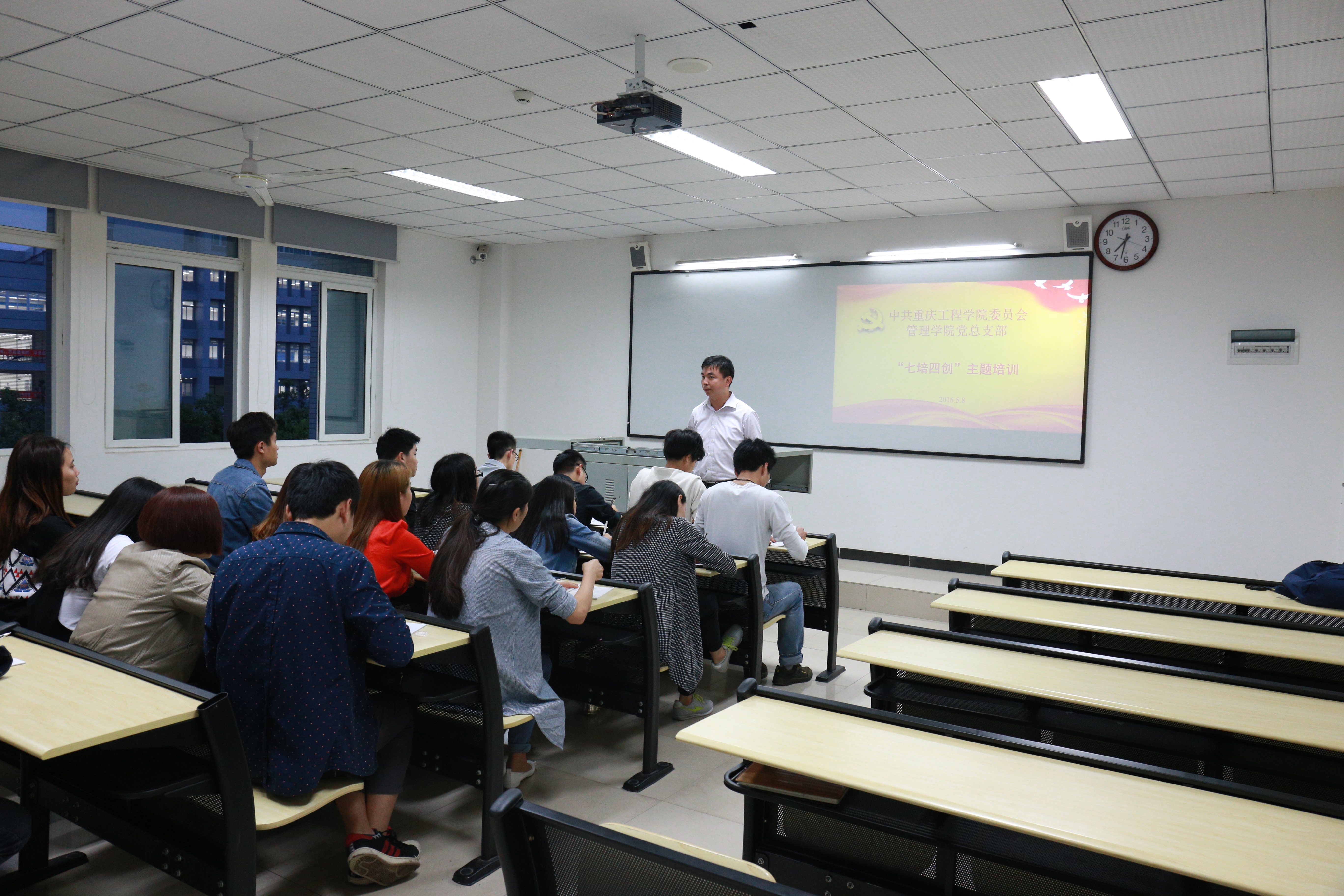 为深入学习贯彻习近平总书记系列重要讲话精神,推动全面从治党向基层延伸,巩固拓展党的群众路线教育实践活动,进一步加强大学生党员队伍在思想、组织、作风、纪律等方面的学习,5月8日,管理学院在第六教学楼224教室召开了由管理学院学生党支部书记杨军主持的“两学一做”主题培训活动。管理学院全体学生预备党员参加本次培训活动。