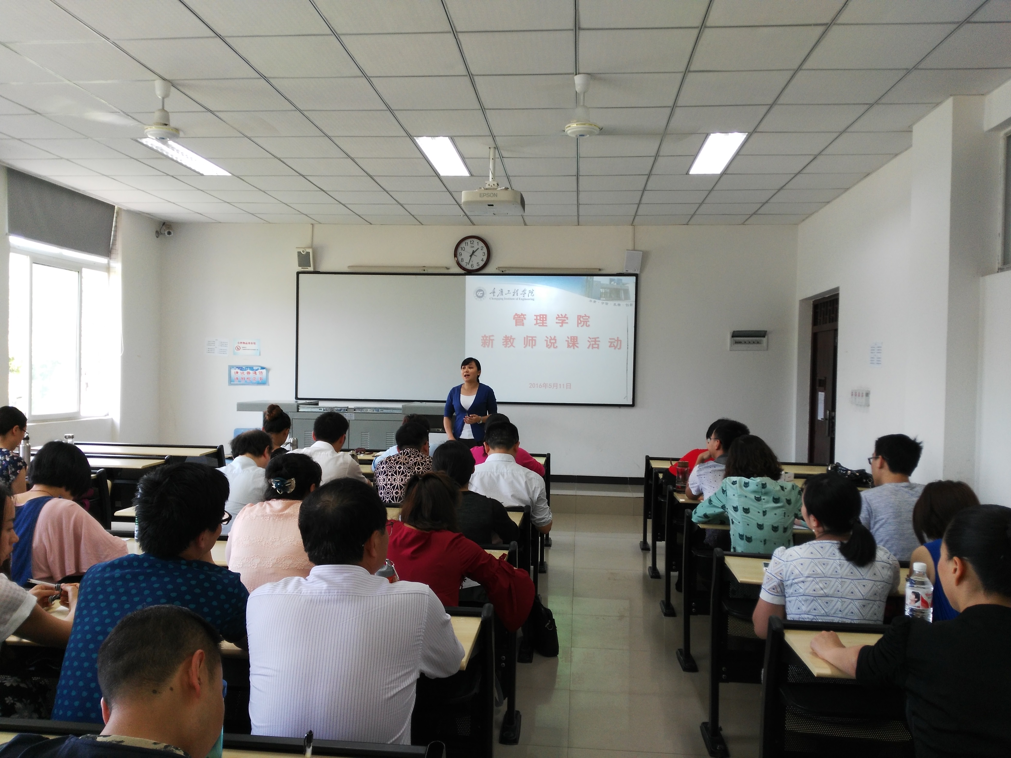 为了帮助新教师更快的适应课堂教学,进一步提高教学质量,管理学院开展了新教师说课活动。通过说课活动,可以达到以下三个目的:第一:可以引导新教师去思考:为什么要这样设计教学;第二:可以进一步明确教学的重点、难点,理清教学的思路,提高课堂教学的效率;第三:有利于提高教师的自身素质。