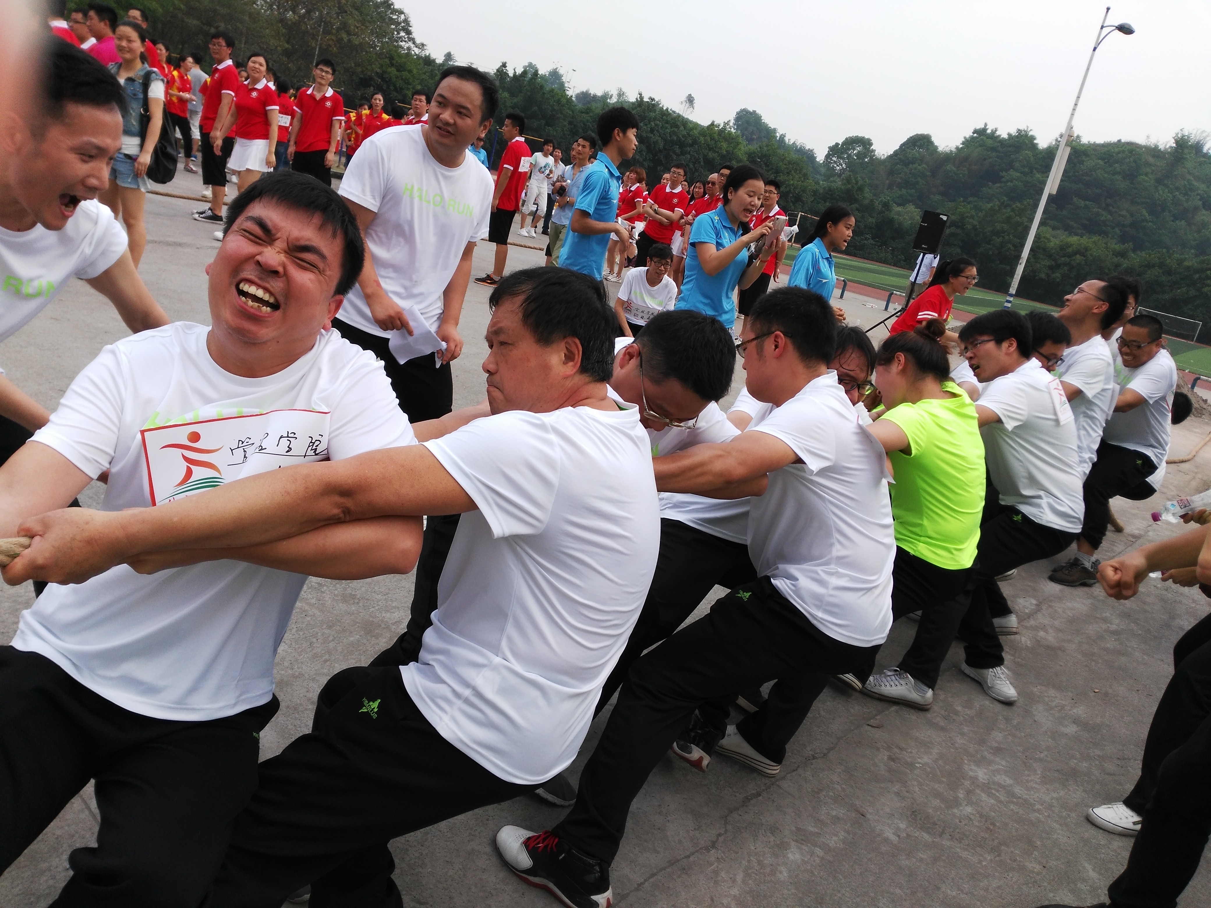 2016年5月6日下午,由校工会举办的第二届“健康杯”教职工运动会在足球场拉开了帷幕。此次运动会旨在推进健康校园的建设,活跃校园文化,提高教职工的身体素质,提升教职工的综合素质,加强学院之间的合作和联系,本着“参与健身第一,比赛成绩第二”的宗旨,“快乐工作、健康生活”的理念。运动会设有第九套广播体操、集体跳绳、足球射门、篮球运球上篮与接力、拔河五个项目,约有300余名教职工参加了比赛。