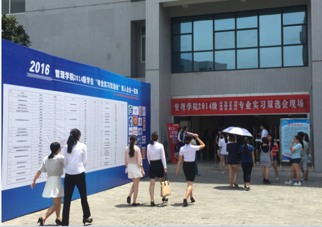 6月29日下午14:00,我院2014级市场营销、连锁经营管理、商务英语专业实习“双选会”在学校新图书馆二楼隆重举行。到场参加此次“双选会”单位共计52家,为2014级市场营销、连锁经营管理、商务英语专业学生提供了销售代表、置业顾问、储备干部、店长、区域经理人事助理、文员等十余个工作岗位,单位人才需求量达500余个,为我院2014级三个专业的学生提供了广大的选择空间, “双选会”到场人次共计700余人次。