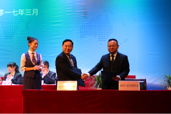 (管理学院)2017年3月29日下午2:00在重庆工程学院学术报告厅举行定单班培养签约暨授牌仪式 ,我校党委书记兼常务副校长张业平、教务处处长胡继志、招生就业处副处长罗质勇、管理学院执行院长简玉刚以及三福百货西南大区总经理、重庆市福建商会副会长、成都市服饰行业商会副会长黄福明、三福百货西南大区零售管理总监蔡赵龙 、西南大区人力资源部经理付莎、西南大区市场营销部经理童鑫星、西南大区招聘配置主管赵磊、西南大区培训主管杨雪梅等人出席了本次签约仪式,同时还有来自于管理学院的14级、15级市场营销本科班500多名学生参会。