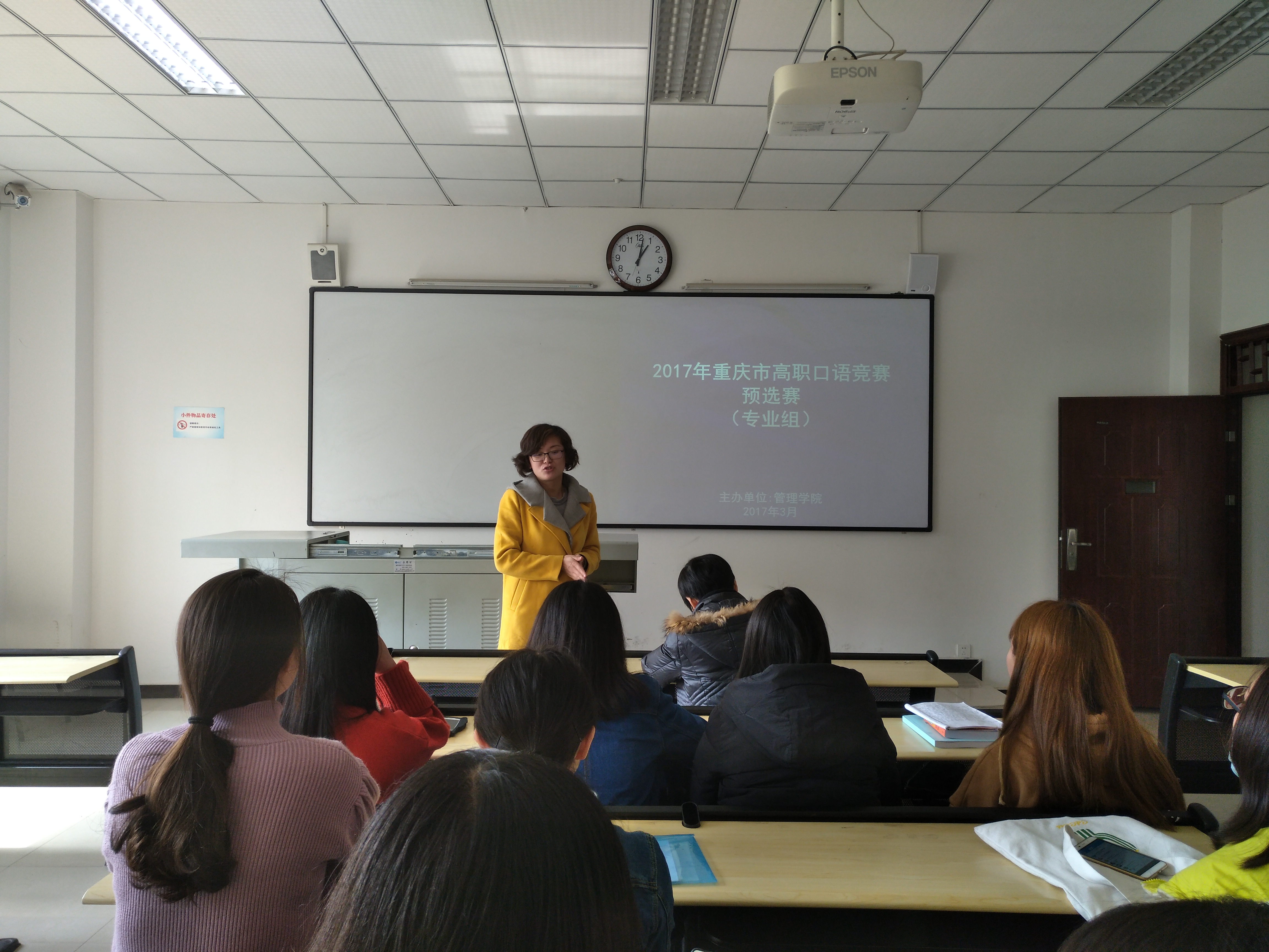 罗春燕老师主持了“口语技能比赛”预选。来自商务英语15、16级的9名同学参与了角逐。经过命题演讲和即席演讲两个环节的口语比拼,评委老师们最终选定商务英语16级的左冬梅同学胜出,届时将于2017年4月代表我校参加第十届重庆市高职院校学生职业技能竞赛英语口语赛项(英语专业组)的比赛。