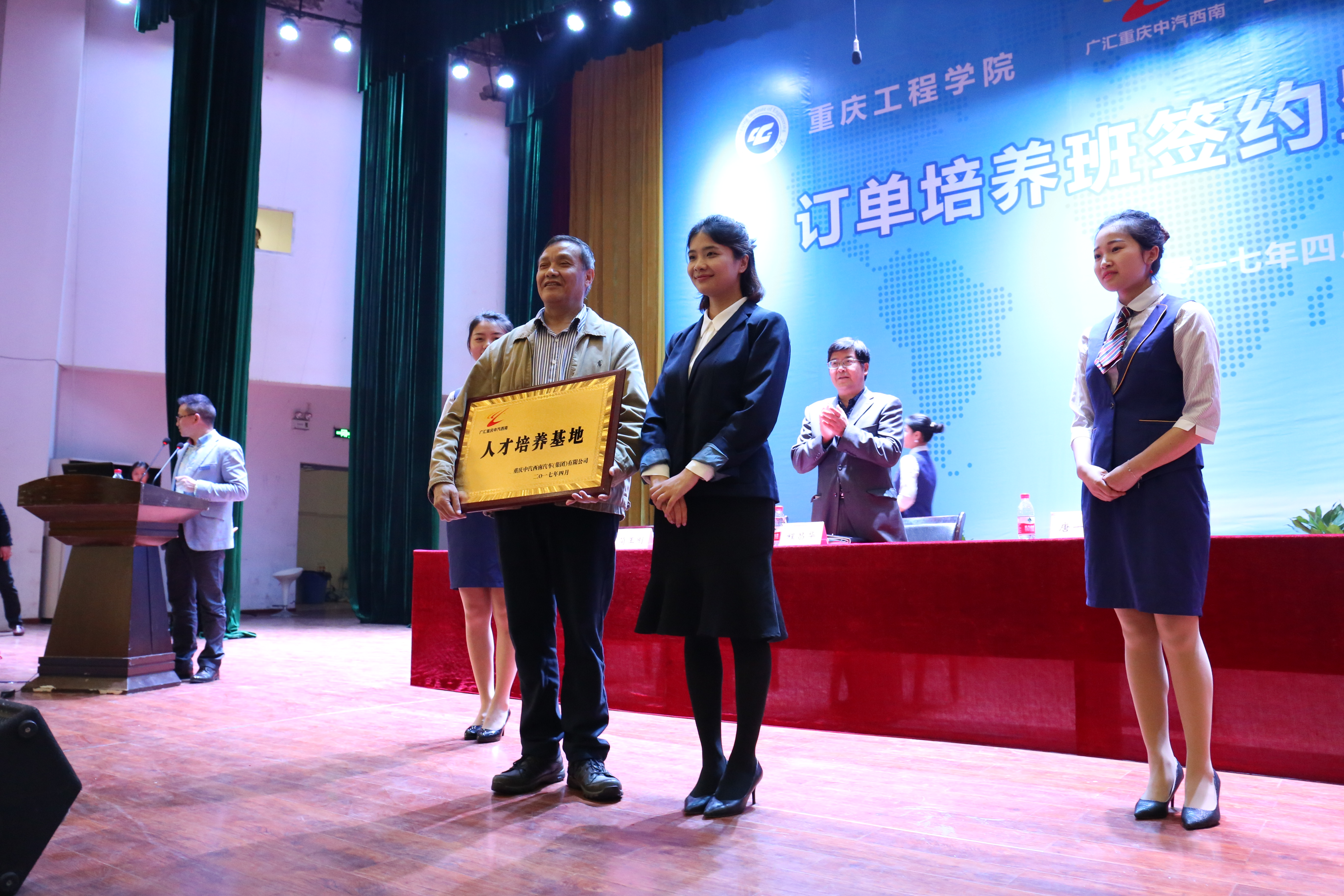 2017年4月26日,重庆工程学院与重庆中汽西南汽车(集团)有限公司在学术报告厅举行了校企合作订单班签约及授牌仪式,出席仪式的领导有学校校长唐一科、副校长程昌华、教务处处长胡继志、招生就业处处长王建东、管理学院执行院长简玉刚、中汽西南人力行政总监李佳、招聘主管刘浏、一汽丰田销售经理邓多,同时工商管理系全体教师和市场营销、财务管理专业的学生参加了此次仪式。