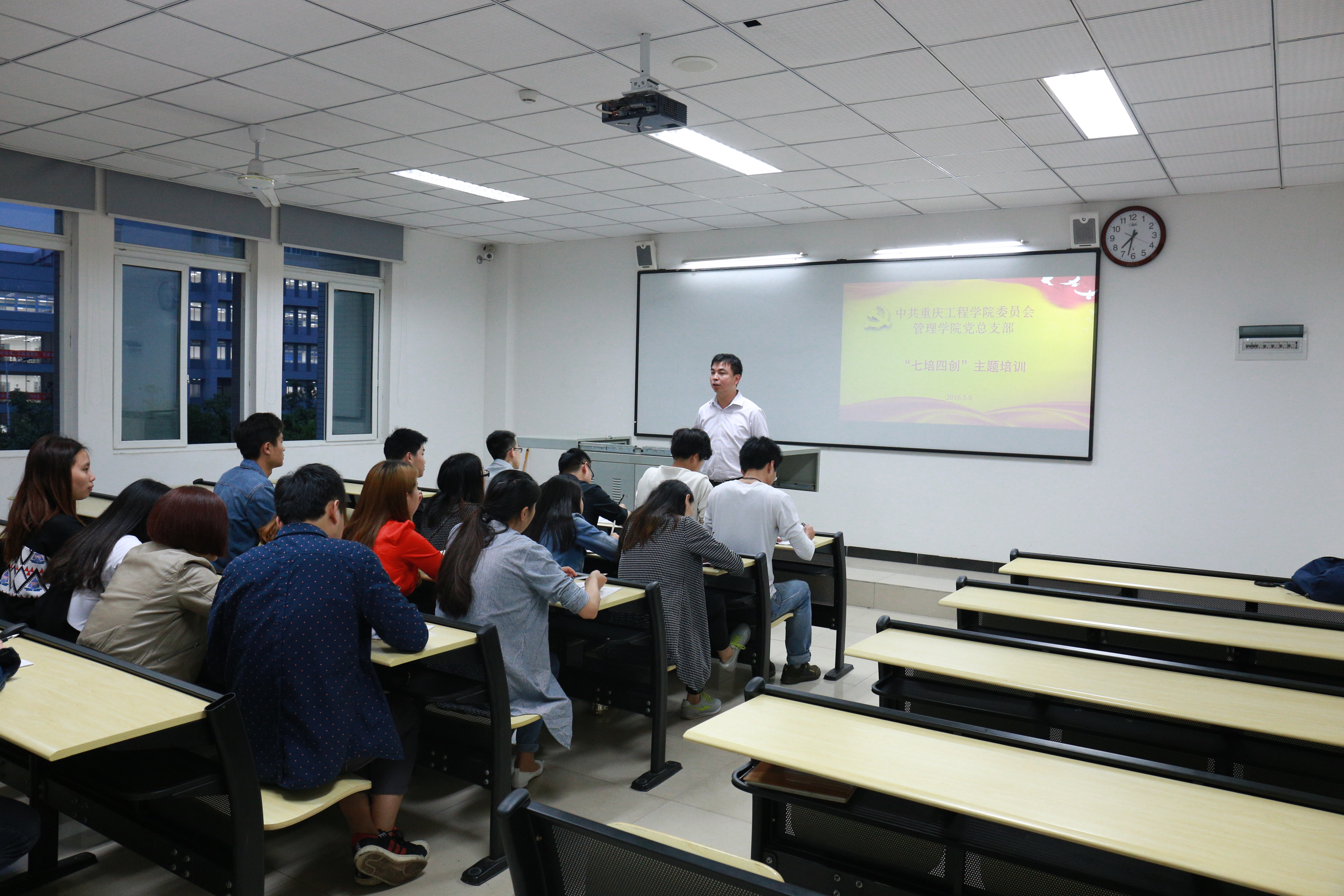 为深入学习贯彻习近平总书记系列重要讲话精神,推动全面从治党向基层延伸,巩固拓展党的群众路线教育实践活动,进一步加强大学生党员队伍在思想、组织、作风、纪律等方面的学习,5月8日,管理学院在第六教学楼224教室召开了由管理学院学生党员书记杨军主持的“两学一做”主题培训活动。管理学院全体学生预备党员参加本次培训活动。