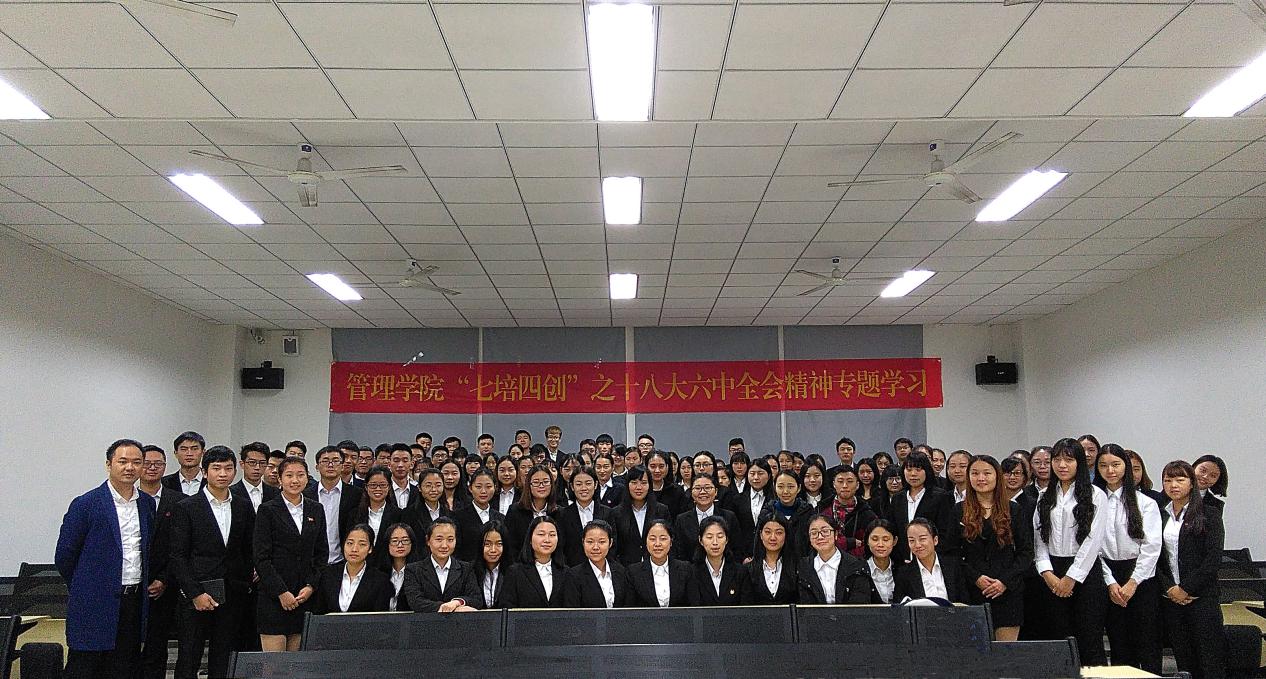 为深入学习贯彻党的十八届六中全会精神,11月7日下午,管理学院党总支部在六教201教室开展了十八届六中全会精神专题学习会,本次专题学习由管理学院党总支部书记熊力主持并传达学习党的十八届六中全会精神。管理学院全体学生党员、预备党员、入党积极分子参加专题学习。