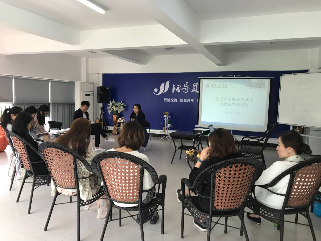 2017年5月12日早上9点30分,管理学院学生工作室特邀重庆重庆理工大学国际学院党总支副书记龙婷教授做学生工作交流,龙书记,曾担任辅导员12年,有丰富的学生工作经验,曾获2015年重庆市高校辅导员年度人物。坚持思政教育创新,凝聚网上网下合力。创办重庆理工大学“青年红色根据地”红色网站。指导学生连续三年拿下校“学子百家讲坛”冠军,极大的激发了学生们的科研热情。