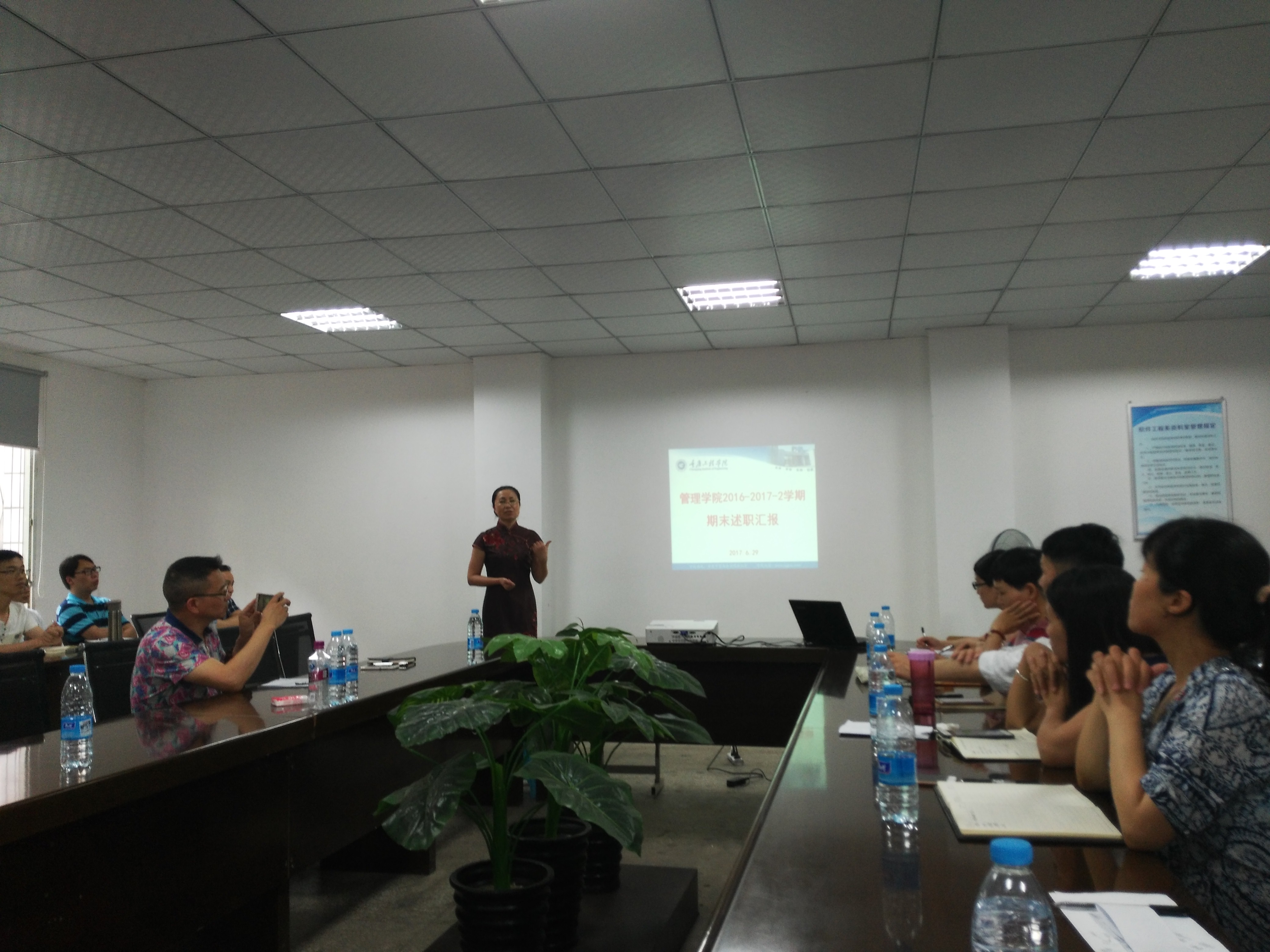 2017年6月29日上午9:00,管理学院全体教职工分别在三教401和三教501举行2016-2017学年述职汇报大会,出席本次会议的领导有重庆工程学院副校长王琼花,管理学院执行院长简玉刚,党总支书记熊力,副院长李玲,本次会议由管理学院办公室主任陈娟主持。
