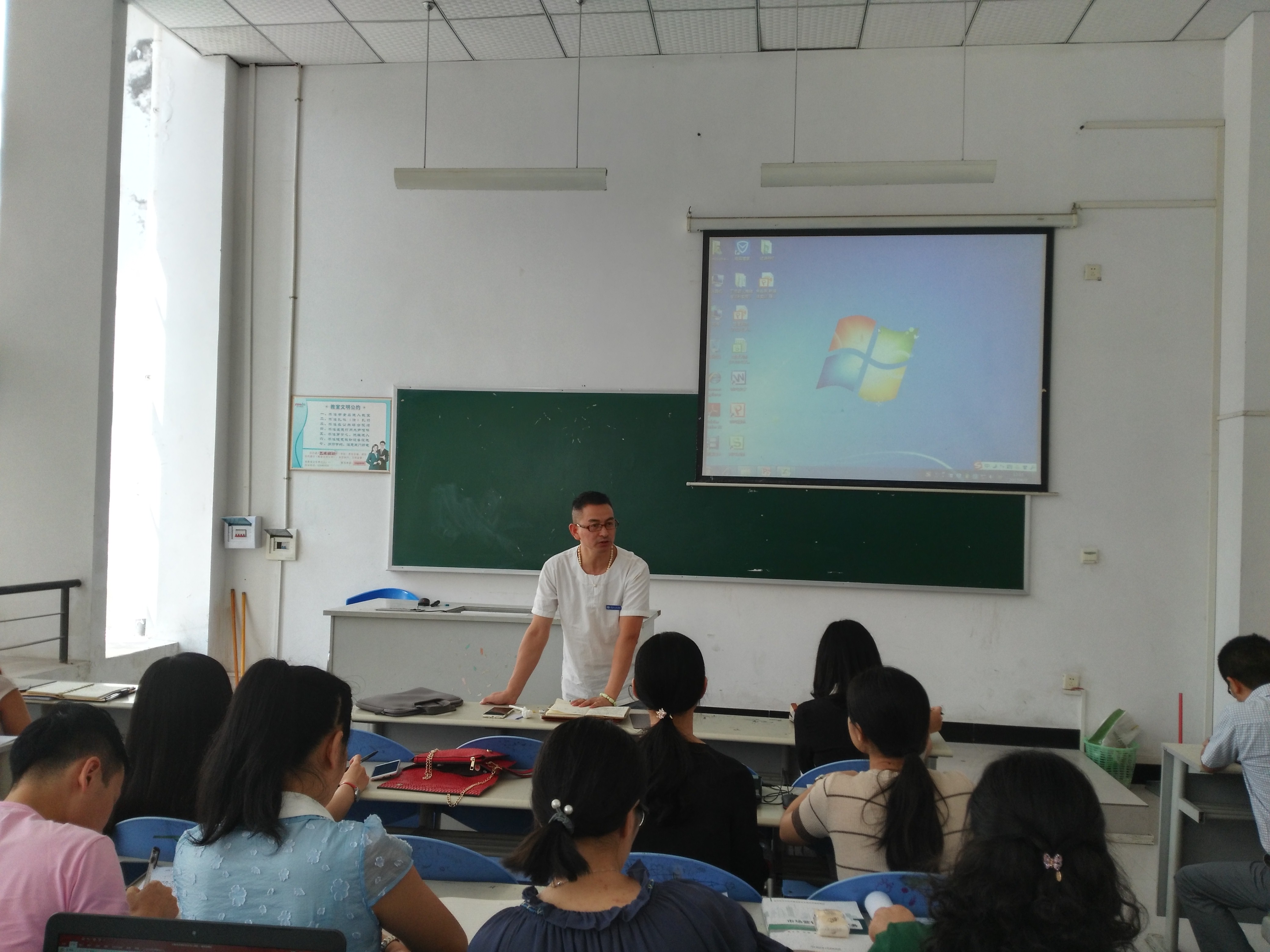 为加强新进教师教学能力培养,帮助新进教师提高教学质量,掌握教学基本技能,确保新进教师的授课质量,让新进教师尽快熟悉课程、站稳讲台,加快新进教师成长步伐,增强新教师上好第一堂课的信心,2017年9月7日上午10:30,管理学院在五教102教室开展了新教师第一堂课试讲。