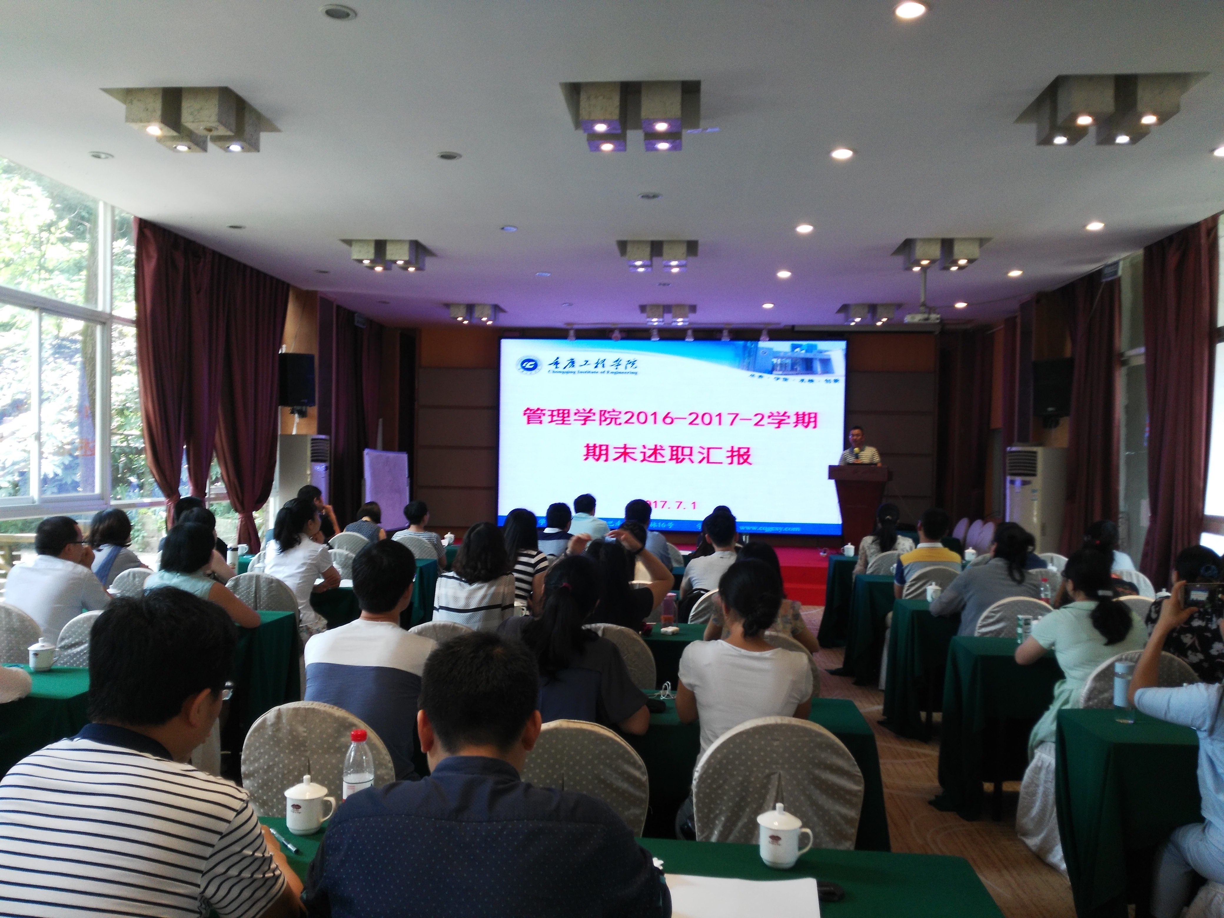 为了进一步加强教职工之间的交流,增强团队意识,提升学院的综合竞争力,2017年6月30日18:00至2017年7月1日13:00,管理学院在重庆市巴南区鱼洞云篆山风景区清风峡饭店开展16-17-2学期期末总结活动,一方面对本学期的工作进行经验总结,另一方面对新学期的目标、任务进行规划。
