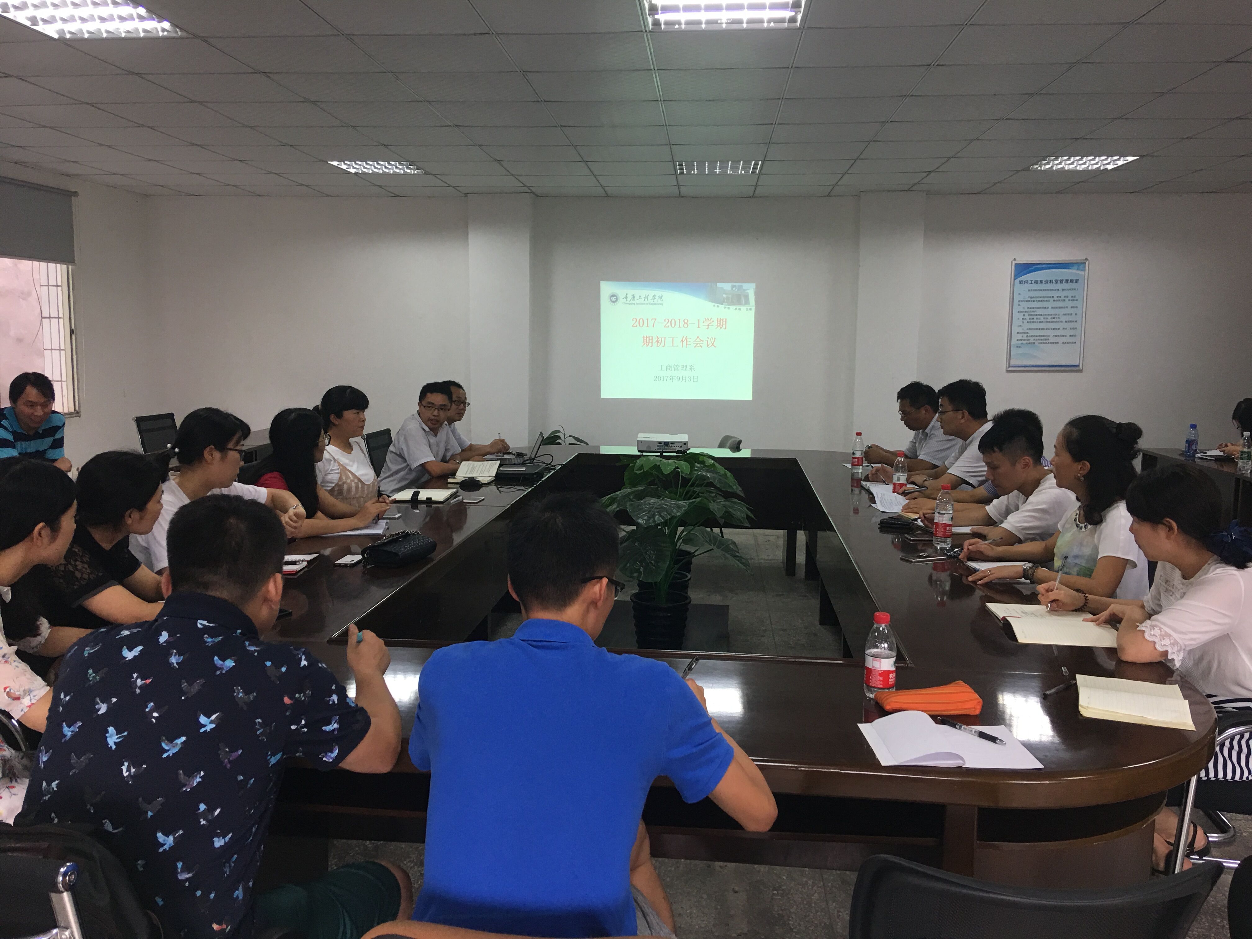 2017年9月3日下午2:00,工商管理系按照学院期初教学工作会议精神,在3401会议室组织召开了本学期首次工作会议,会议由周小波主任主持。周主任首先组织老教师和新教师进行了互相认识,详细介绍了工商管理系教师队伍、专业设置等基本情况,最后重点对本学期工作任务进行了具体部署。