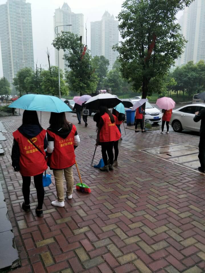 志愿者们为此次活动做好了准备,下午13:10开始向活动举办场地行进。14:00活动正式开始。志愿者顶着小雨在公路边、花台里捡拾被人们随意丢弃的垃圾,并且认真清理,最后在志愿者们的辛苦工作下逐渐恢复原来的面貌。清理完社区周围的垃圾后,志愿者又纷纷向周围的居民宣传垃圾分类等环保小知识,并倡导爱护环境从自身做起,共同维护绿色生态环境。
