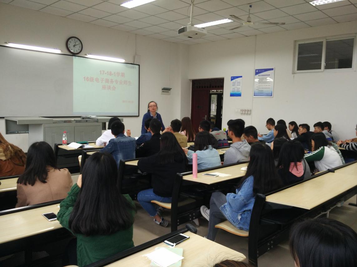 10月25日,管理学院电子商务教研室对15级、16级电子商务专业的学生展开了师生座谈会。参会人员有各个班级的学生代表及电子商务专业相关上课的教师,目的是希望通过本次座谈会更好的了解学生们的学情,更好的服务学生,开展更高效的教学工作。