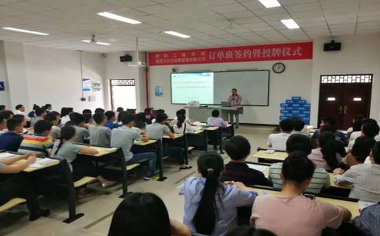 在与会人员的共同见证下,张书记与汪部长分别代表校企双方签订了订单培养合作协议,并相互授牌。