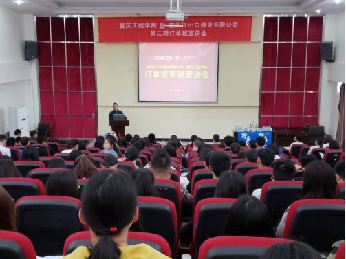 宣讲会上,管理学院院长简玉刚首先感谢了一年以来江小白酒业对我校校企合作工作的支持,江小白酒业“重视年轻人,重用年轻人,敢于破格提拔”的用人理念使得我校学生在公司得到快速成长。同时简院长还对第二届订单班提出新的期望和要求,将以第二届订单班合作为契机进一步加深校企合作,力求在人才培养、师资互派、课程共建等方面实现突破。