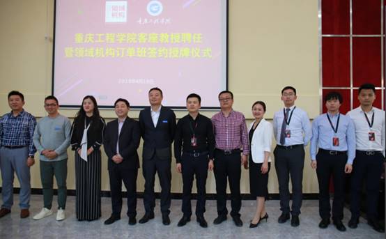4月18日,重庆工程学院客座教授聘任暨领域机构订单班签约授牌仪式在阶梯报告厅正式举行。出席本次仪式的有党委书记兼常务副校长张业平等校方人员以及领域机构董事长樊华一行,双方在会上进行了友好而深度的沟通,为营造未来良好的校企合作关系奠定了基础。